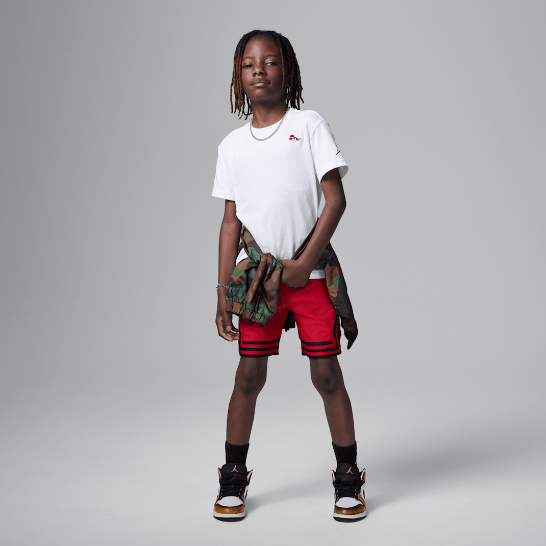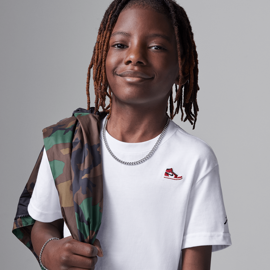 Kids can complement your AJ1’s with this cotton/poly tee, which features a small sneaker patch accent. Dropped shoulders create a relaxed fit, the tagless crewneck provides a comfy feel and the regular cut is roomy enough for freedom of movement.