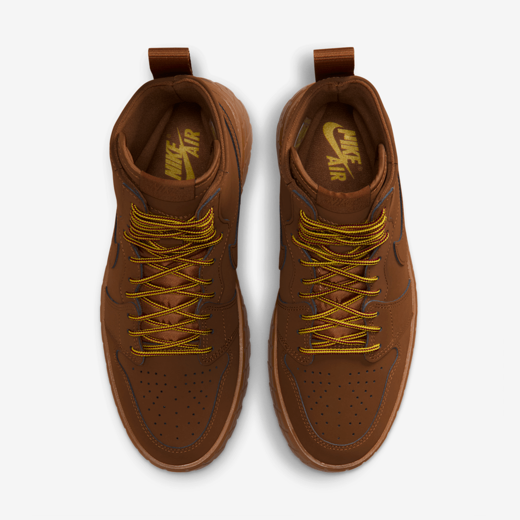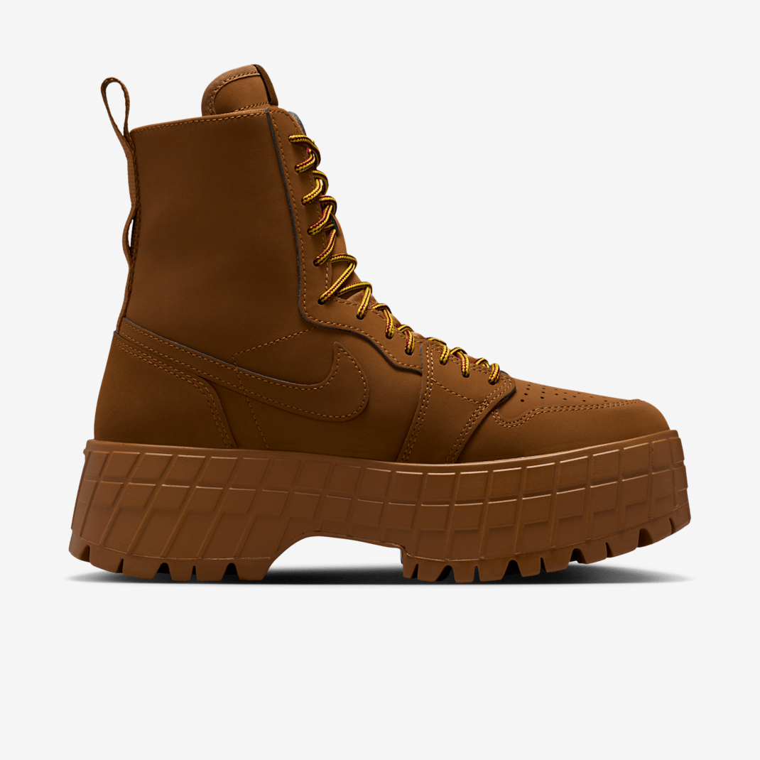 (Flight) suited and booted. This bold, rugged sneaker boot is key for your rotation. Luxe leather combines with a chunky platform sole to pump up your personal style. Exaggerated outsole lugs and Nike Air cushioning support your steps. And don’t sleep on the AJ1 DNA: a diamond inset on the heel displays Jumpman insignia, grounding your look in hoops heritage.