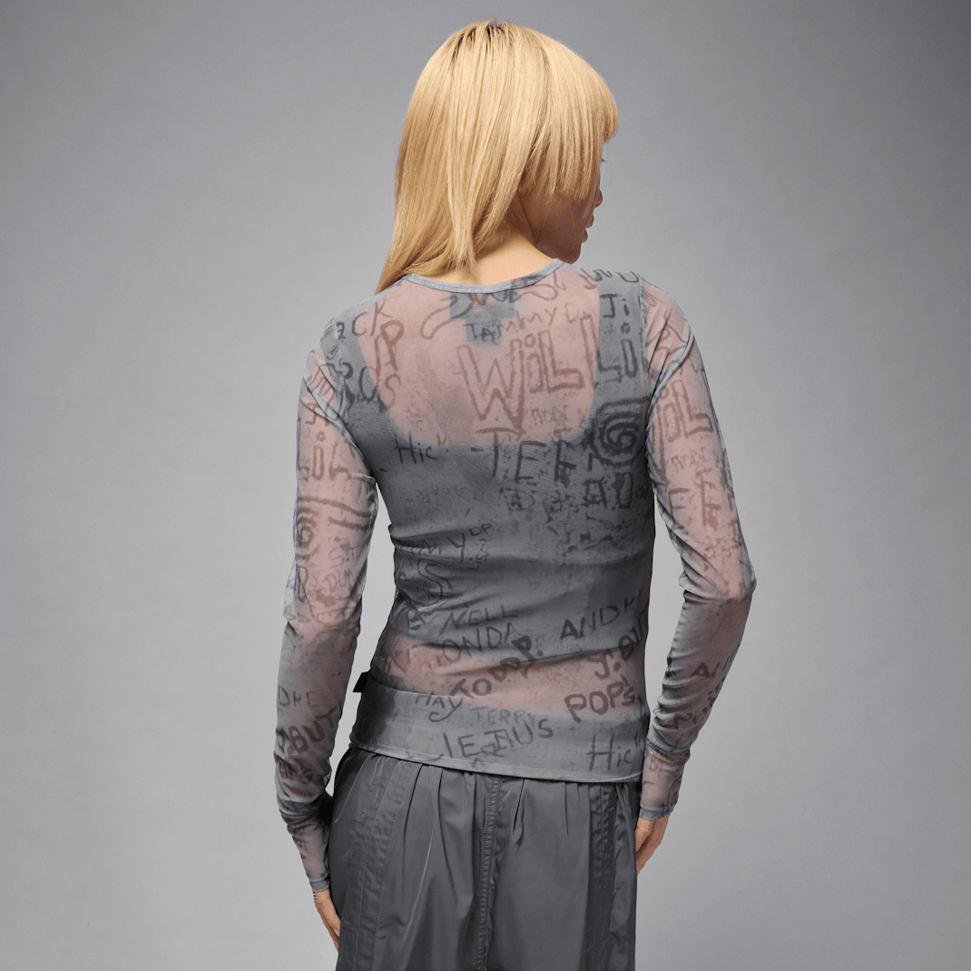 Air Jordan is where craftsmanship meets Jordan DNA. See-through mesh and an allover print inspired by an iconic MJ image add depth and dimension to this stretchy, long-sleeve top.