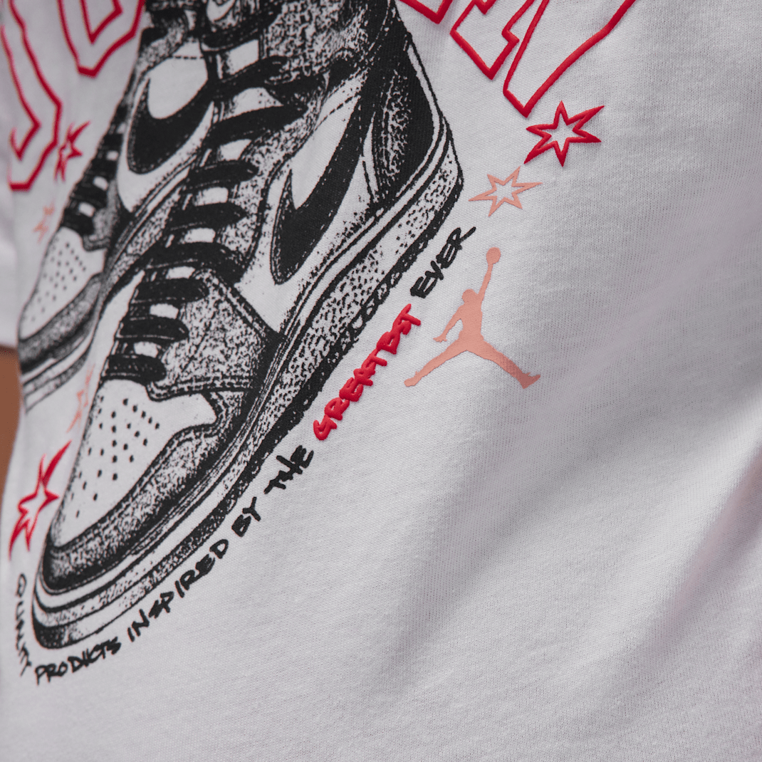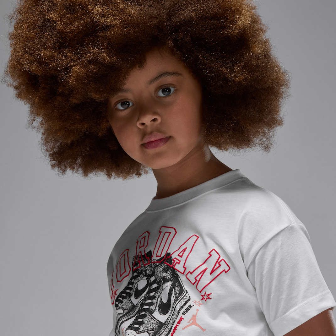 Kids can rep the Brand of Flight while complementing their Air Jordan 1’s in this tee, which is made of cotton/poly jersey knit in a classic short sleeve construction with a tagless crewneck for comfy wear.