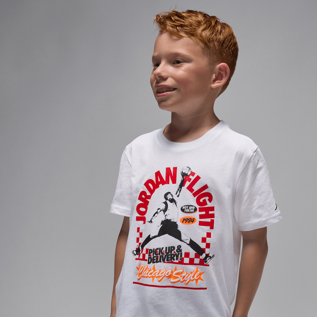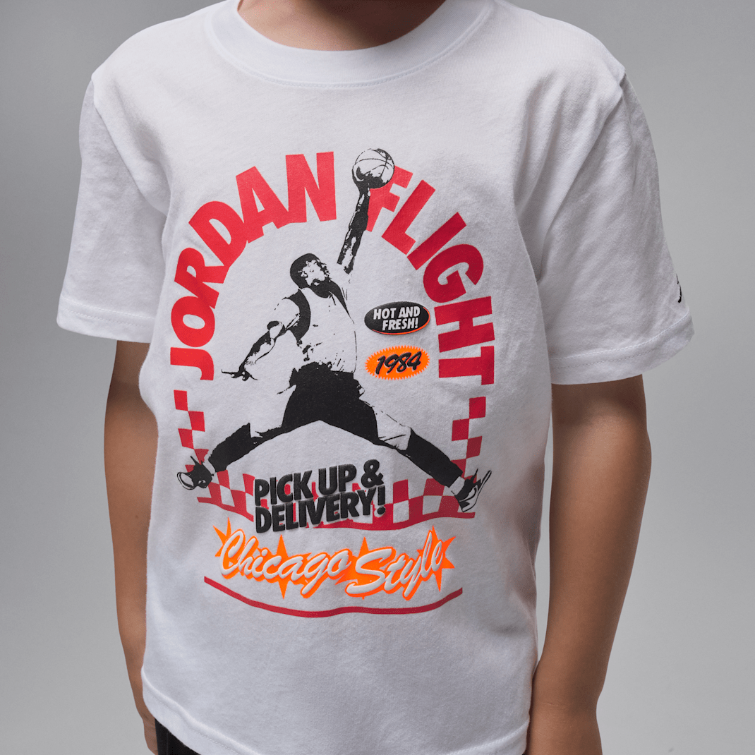 Made of cotton/poly jersey, this graphic tee is hot and fresh out the oven! It has a classic short sleeve silhouette with a tagless crewneck for comfy wear. Style with the Jordan Deep Dish Trucker Hat for a coordinated look that might get your kiddo in the mood for Chicago style pizza!