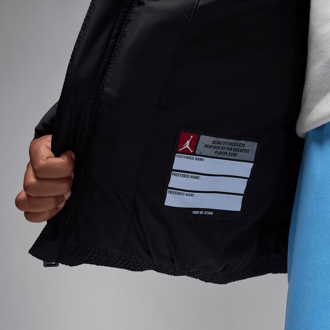 This jacket is cold weather essential made of woven poly with an allover quilted stitch and filled with soft faux down for cozy warmth. The roomy cut and full-zip closure makes layering easy, semi hidden zip pockets on the sides help secure your small essentials, and the hood and water resistant finish will help keep you dry in light rains.