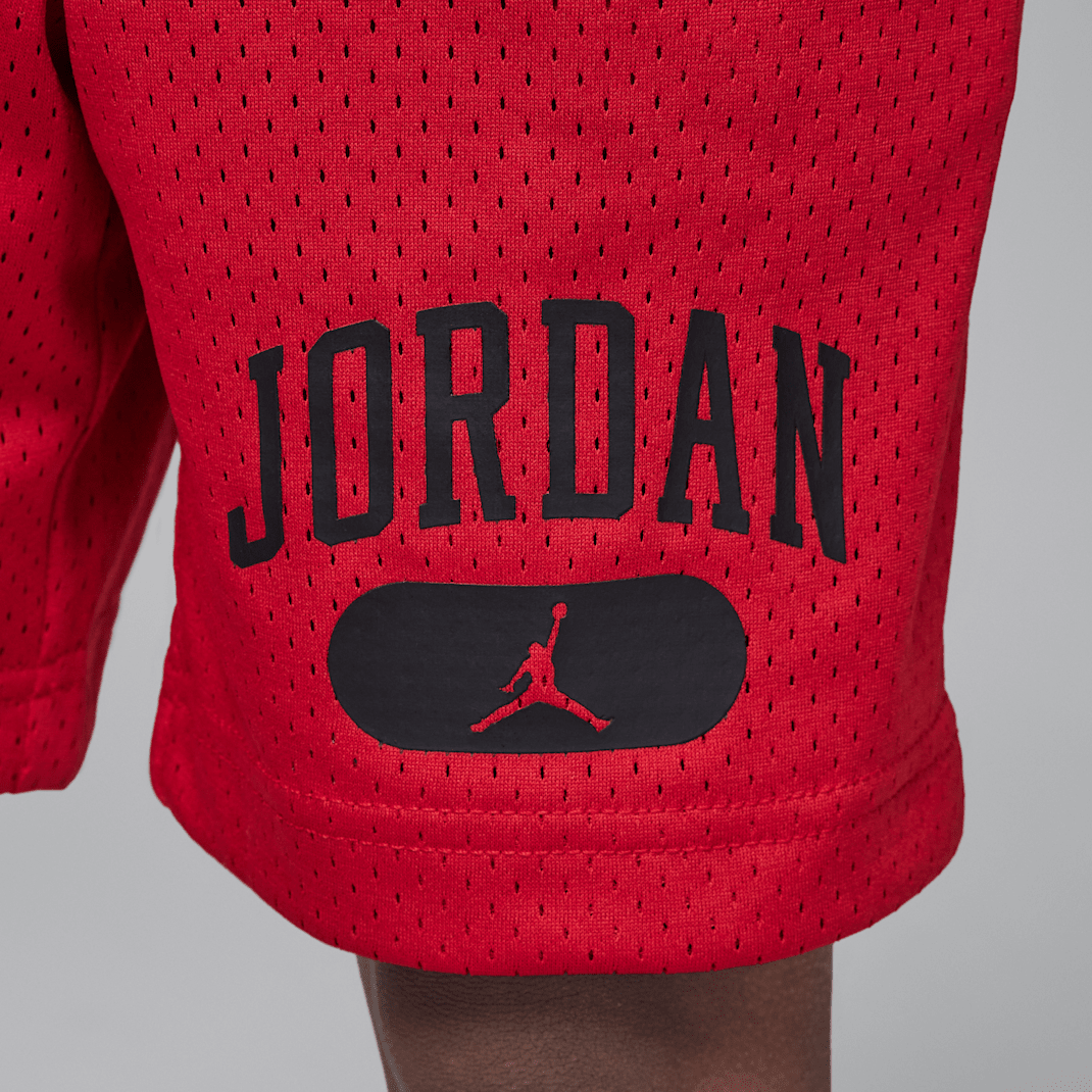 Made of breathable mesh fabric, these shorts are classic phys ed style with a Jumpman touch. They have a stretch waistband with drawcord to help kiddos get a fit they can move comfortably in whether running laps, busting out push-ups or any other activity.