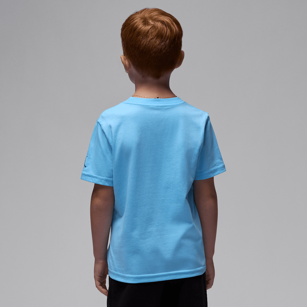 See the Jumpman in a whole new way with this cotton tee, which is a classic short sleeve silhouette with a tagless crewneck for fuss-free wear that adds to the comfy fit. Style this tee with any Jordan bottom for a coordinated look that will complement your kiddo’s kicks.