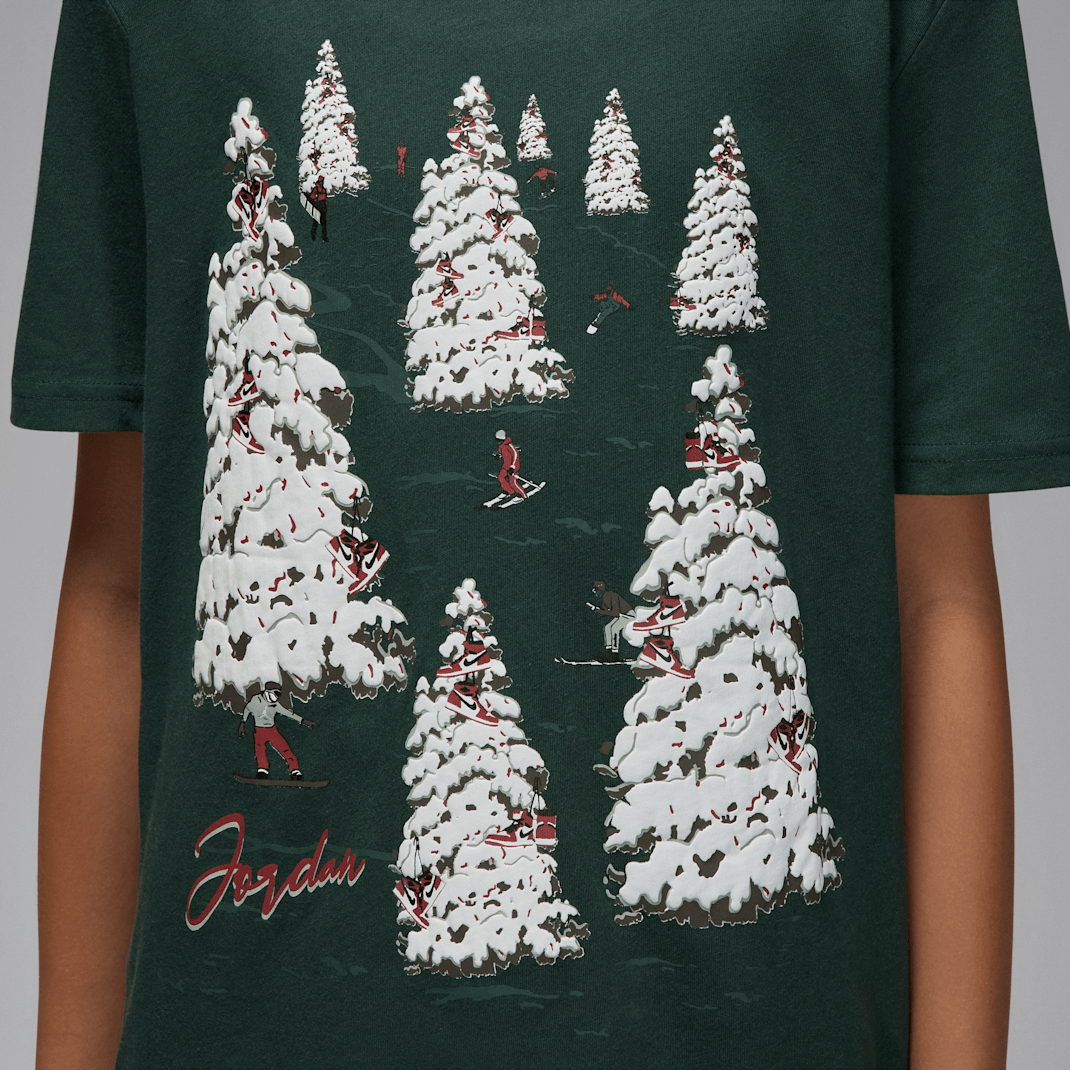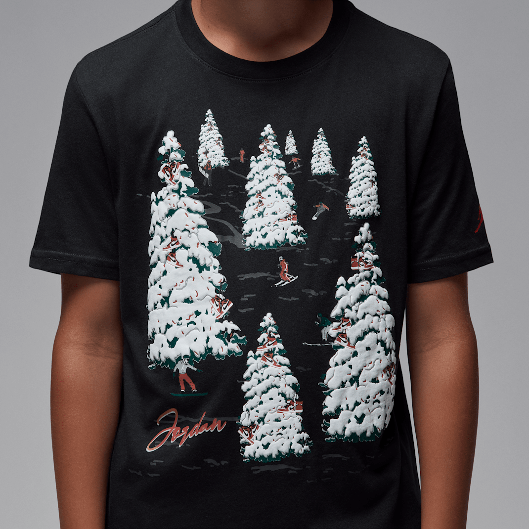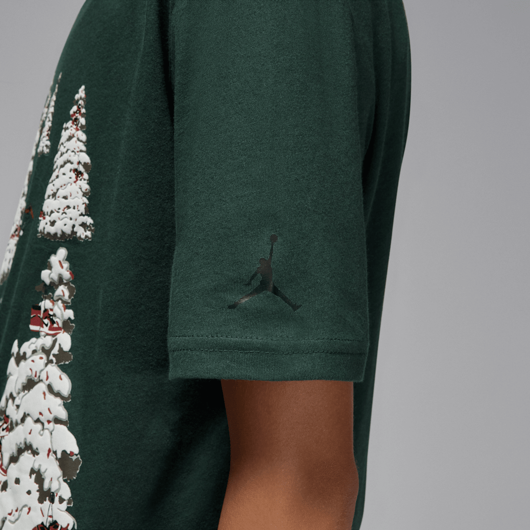 Featuring a festive winter scene, this tee is hoop style for the holidays and beyond made of jersey knit fabric in a short-sleeve silhouette with dropped shoulders that relax the fit. Style with a pair of Jordan joggers for a cozy, coordinated look that will complement your kicks.