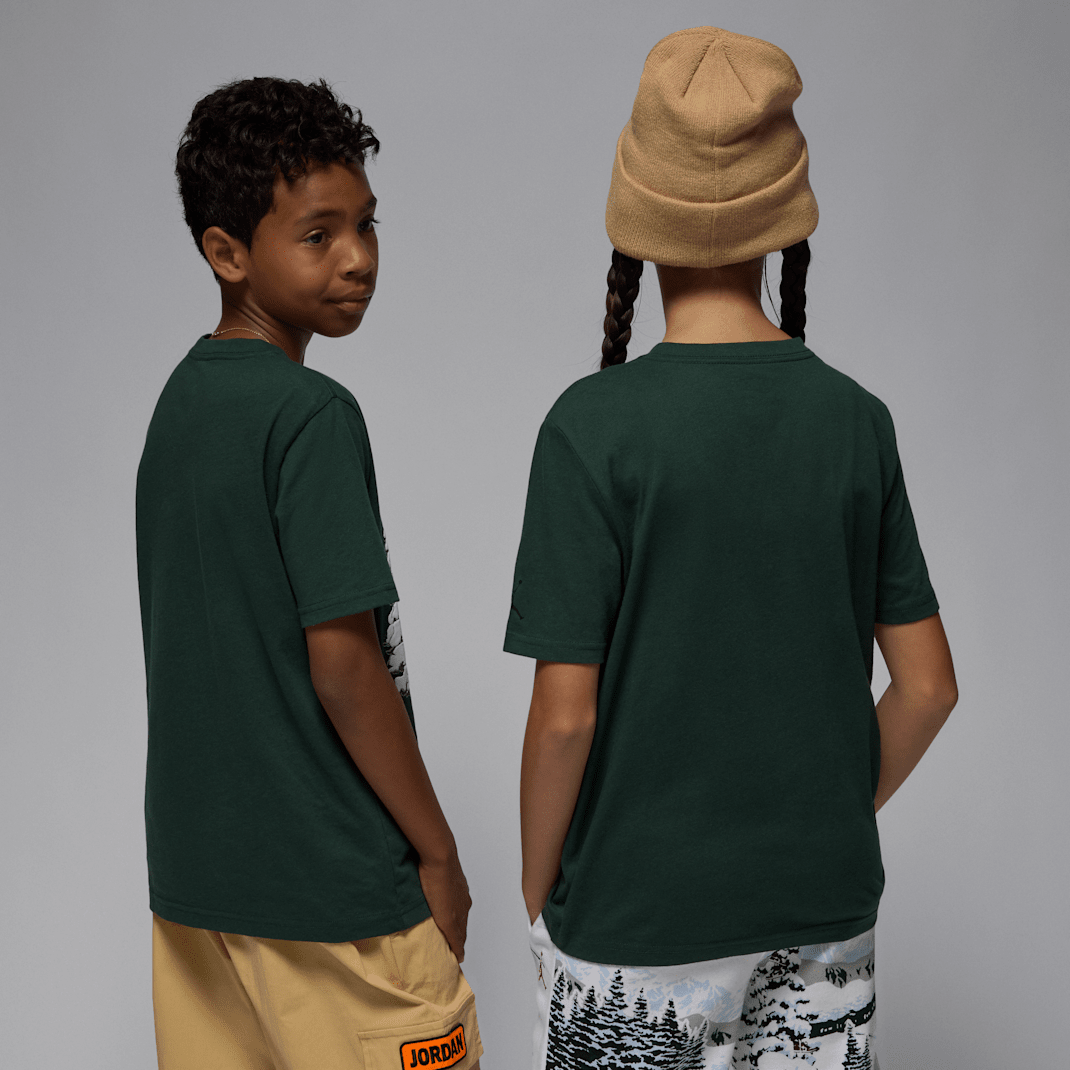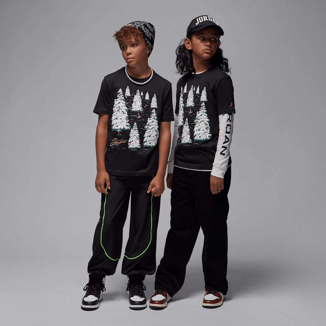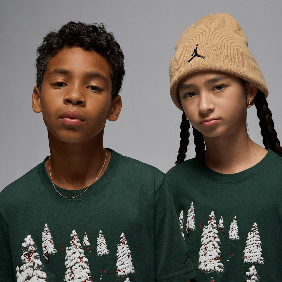 Featuring a festive winter scene, this tee is hoop style for the holidays and beyond made of jersey knit fabric in a short-sleeve silhouette with dropped shoulders that relax the fit. Style with a pair of Jordan joggers for a cozy, coordinated look that will complement your kicks.