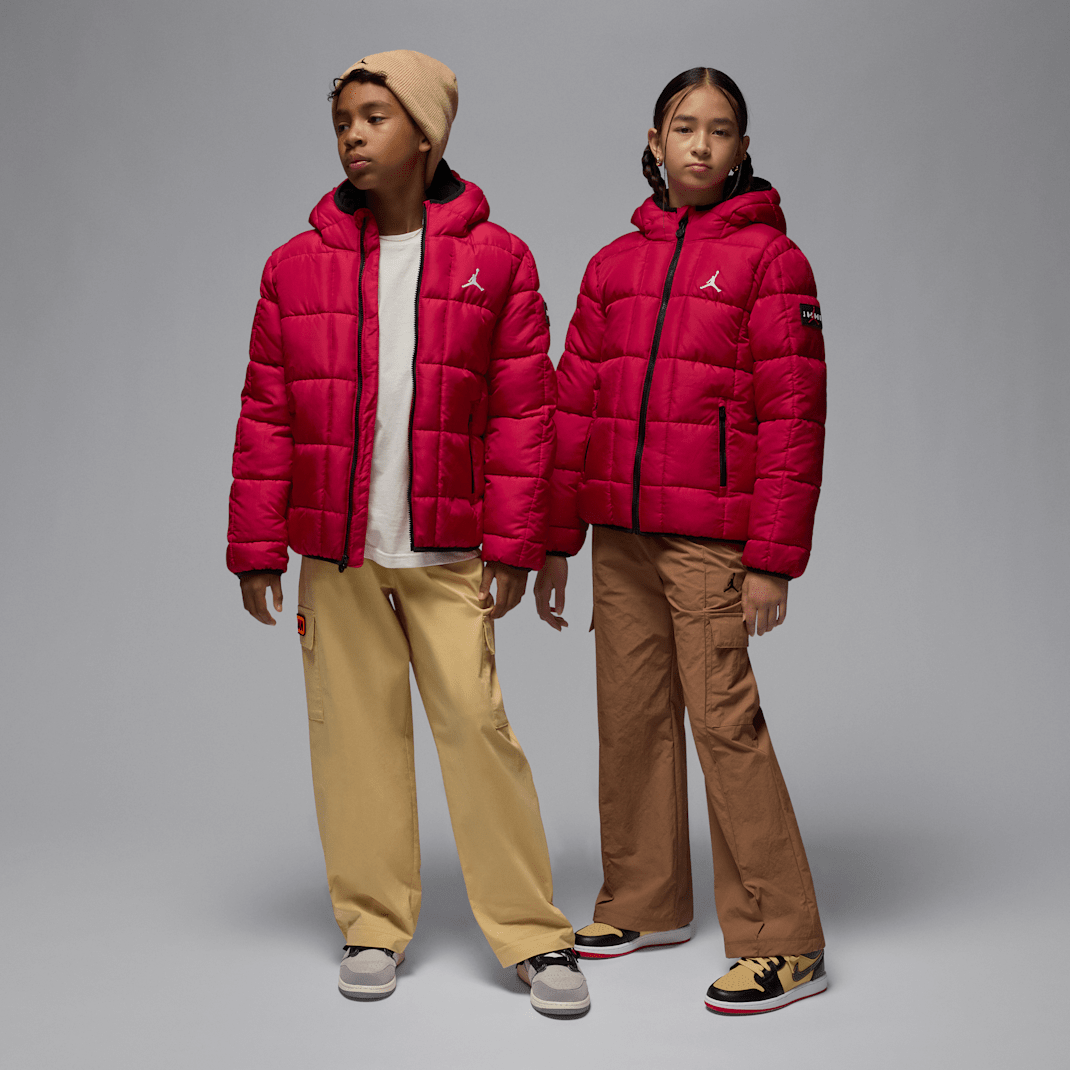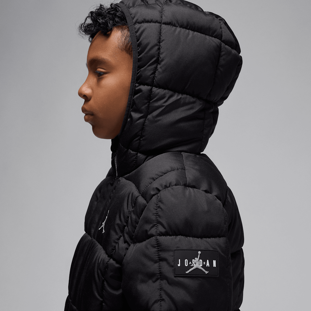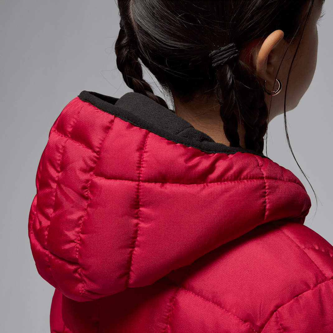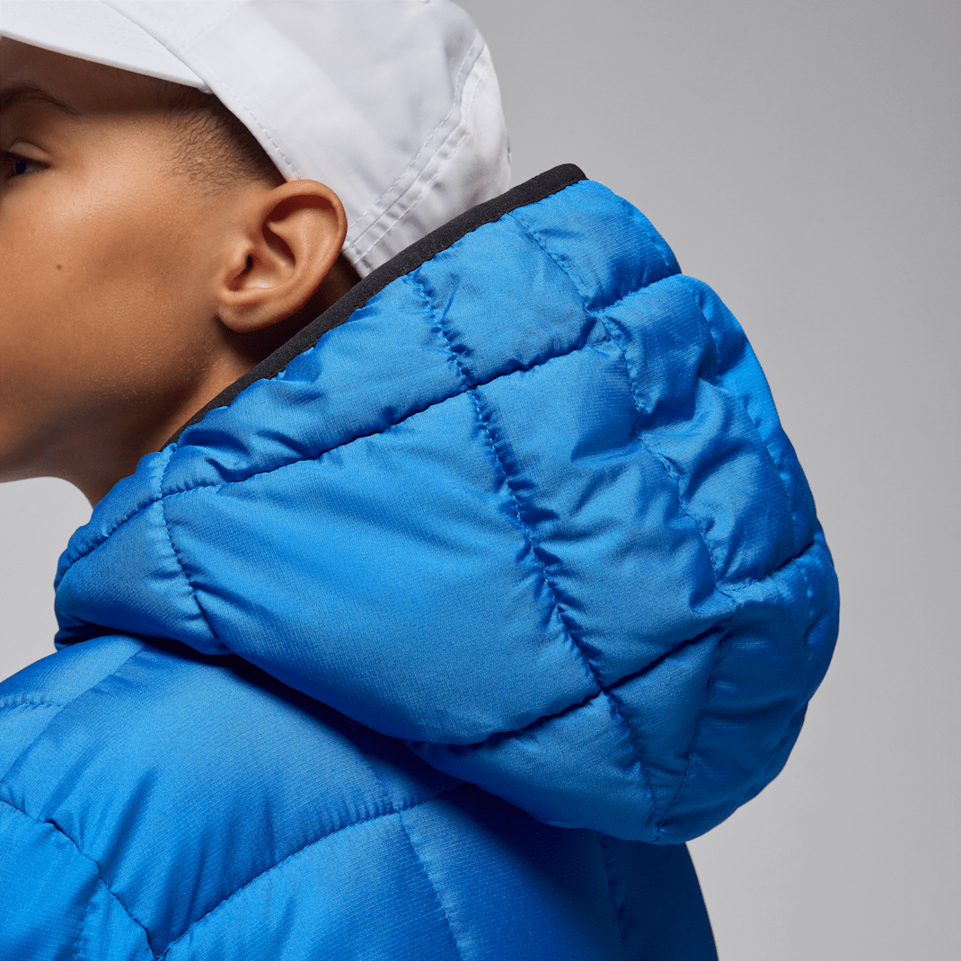 This jacket is cold weather essential made of woven poly and has an allover quilted stitch pattern filled with soft faux down for cozy warmth. The roomy cut and full-zip closure makes layering easy, pockets on the sides provide spots to stash small items, and the hood and water resistant finish will help keep you dry in light rains.