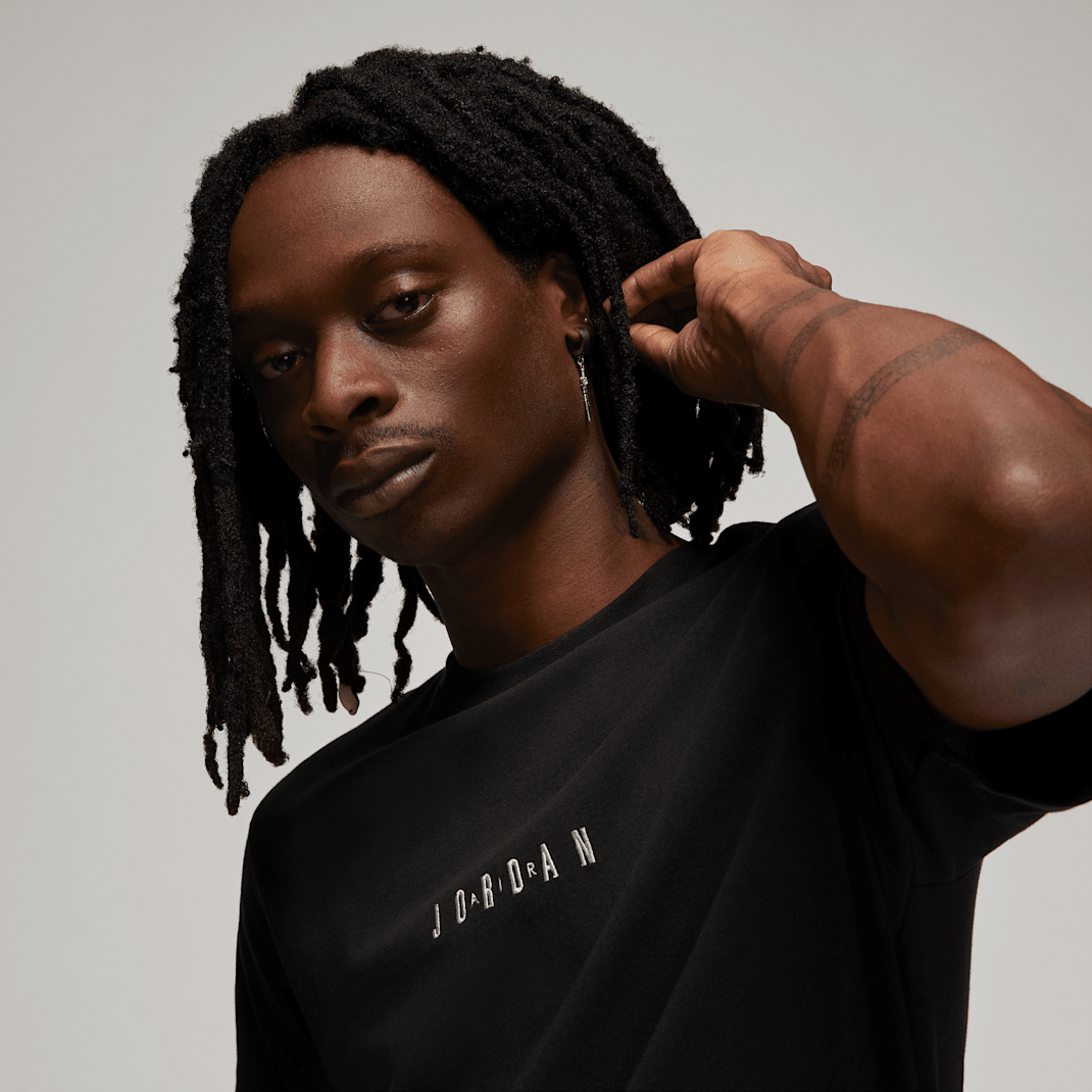 This all-cotton Jordan tee features a minimal, embroidered graphic across the chest. A relaxed fit and monochromatic look make it an easy choice.