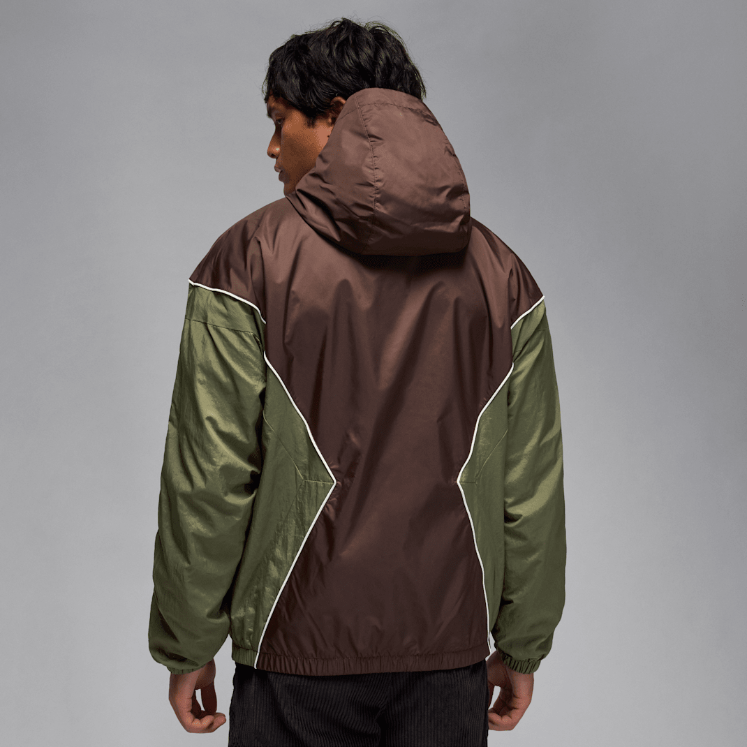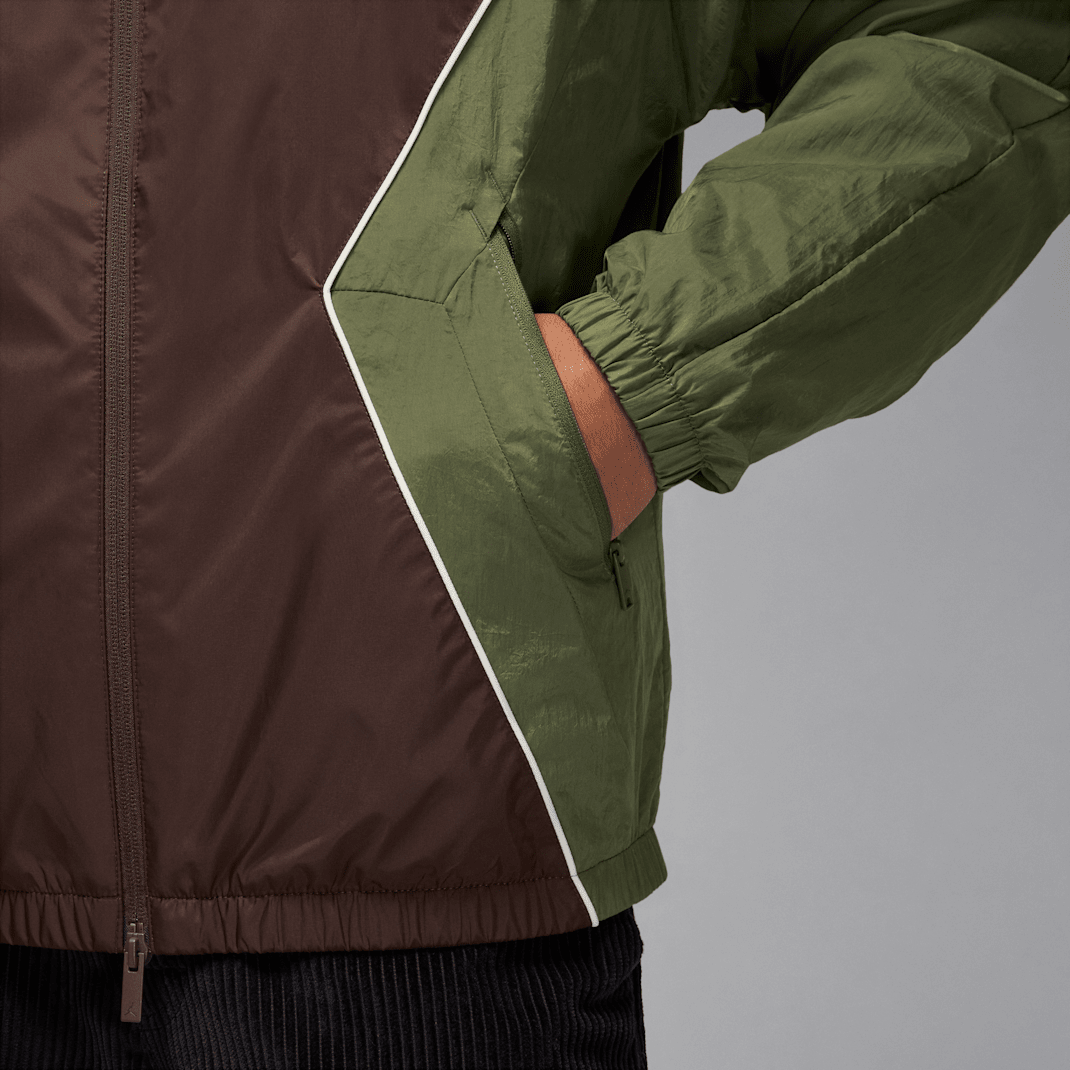 Lightweight and slick, the Draft Jacket is Jordan’s take on the windbreaker. Smooth, water-repellent nylon fabric and an airy mesh lining help keep you dry and comfortable. Piping details add heritage style inspired by MJ’s early warm-up looks.