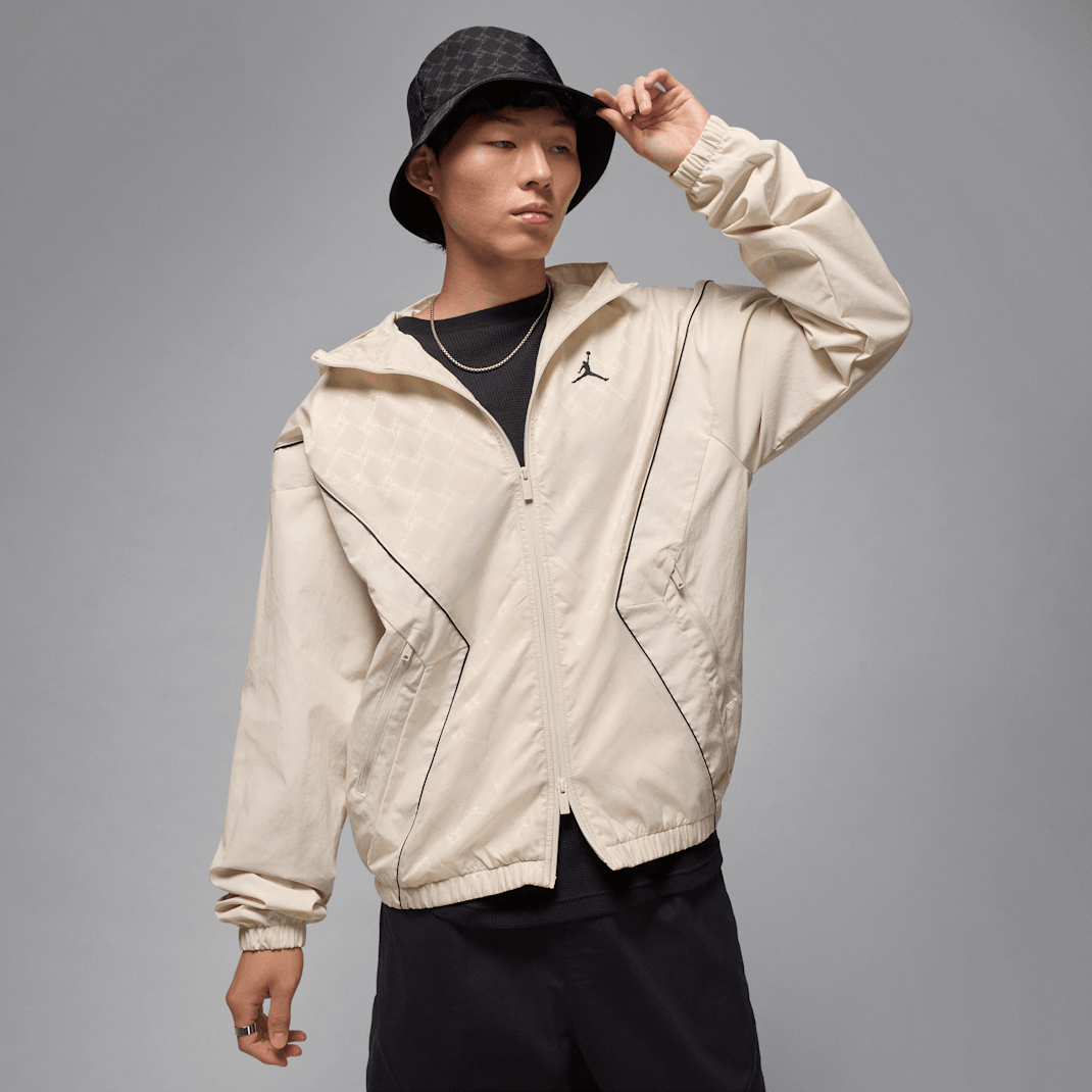 A durable nylon shell works with a breathable mesh lining to turn this roomy jacket into a comfortable staple. A jacquard print and piping details add ’90s energy and subtle flair.