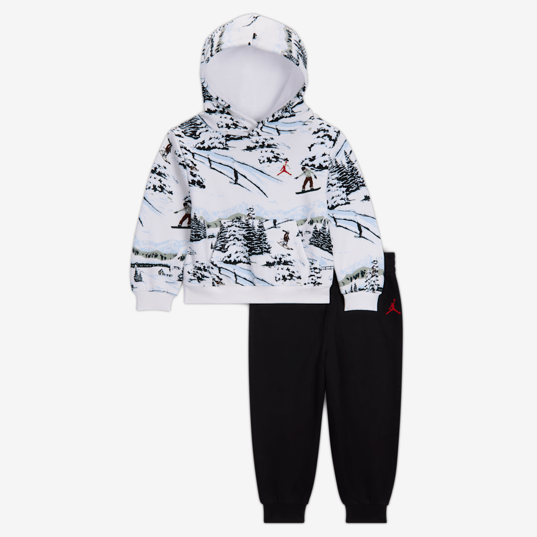 Effortlessly dress smaller ballers in this festive two-piece set made of cotton/poly fleece that has a smooth outside and a soft, brushed inside. The cozy, graphic hoodie has a roomy cut that makes it easy to layer. The pants have a stretchy waistband for a comfy fit, with tapered legs for a secure feel.