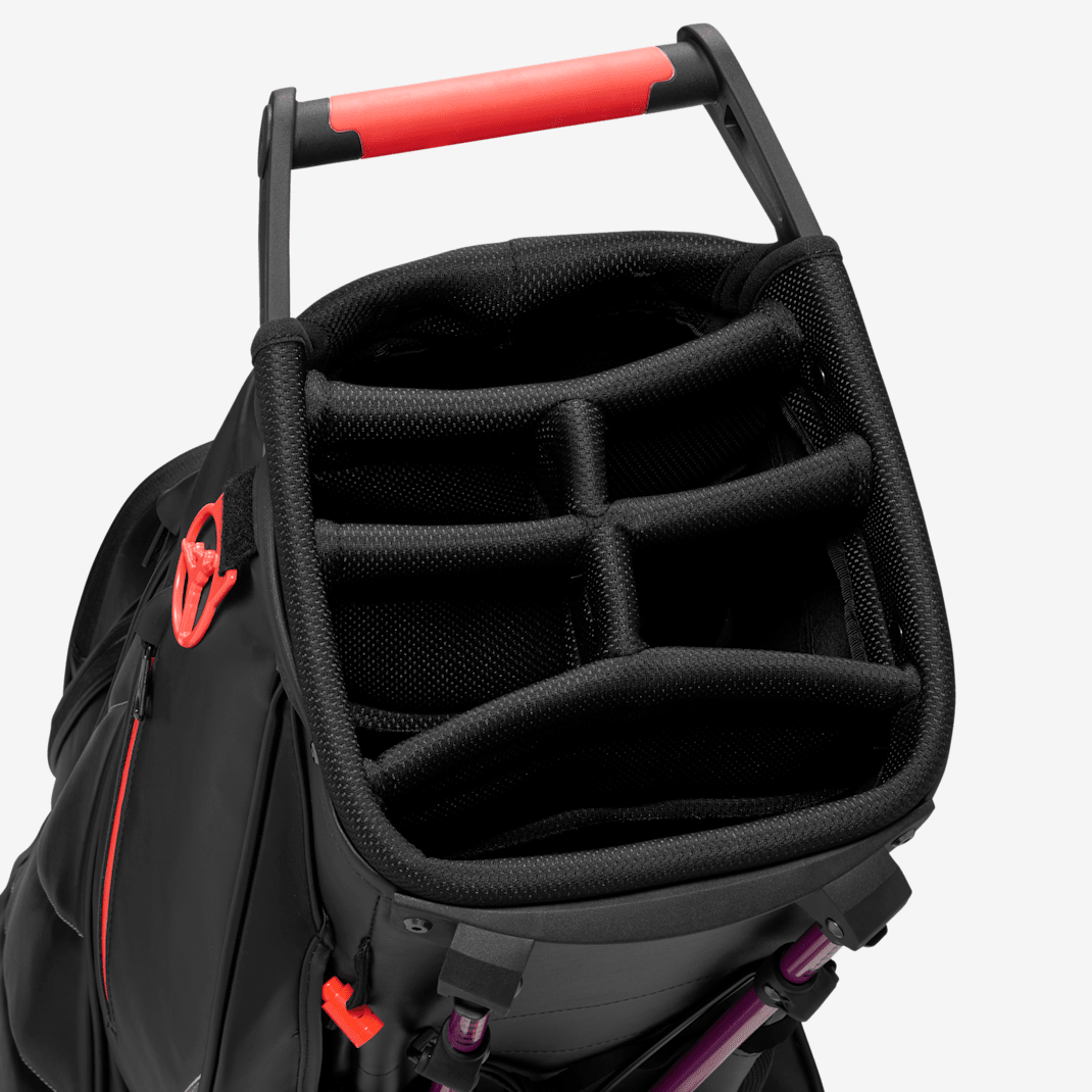 Hit the green with the right gear. From top to bottom, the Jordan Golf Bag has everything you need to knock in that hole-in-1. From its extensive 6-way divider system to the Air Jordan-inspired touches made to hold your towel and umbrella, you’ll be carrying the bag that will help level up your day on the course.