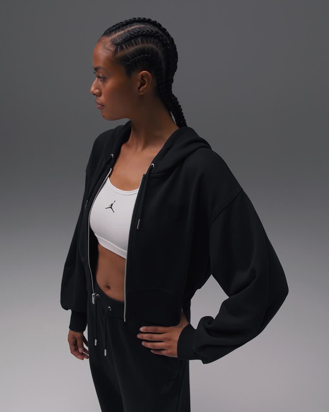 With heavyweight French terry fabric and a cropped silhouette, this roomy hoodie is big on comfort and style. A smooth satin lining in the hood helps keep your hair on point.