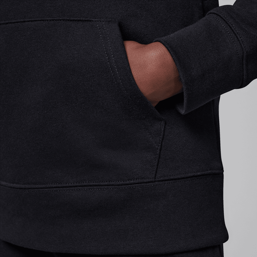 Rep the Brand of Flight in this hoodie, which features the Jumpman Flight script logo patch. It’s made of cotton/poly fleece that feels smooth on the outside and soft on the inside for a cozy feel. Dropped shoulders create a relaxed fit, the kangaroo pocket can be used to stash small items or help keep your hands toasty and the ribbed cuffs and hem help retain warmth. Pair with the Jordan Jumpman MJ Flight Fleece Pants for a coordinated look.