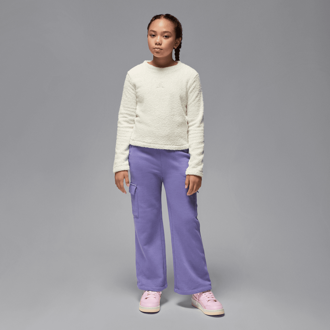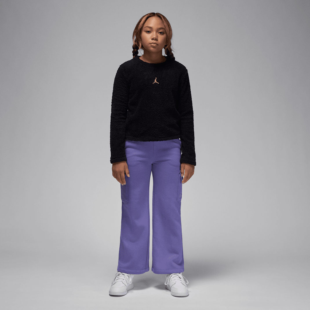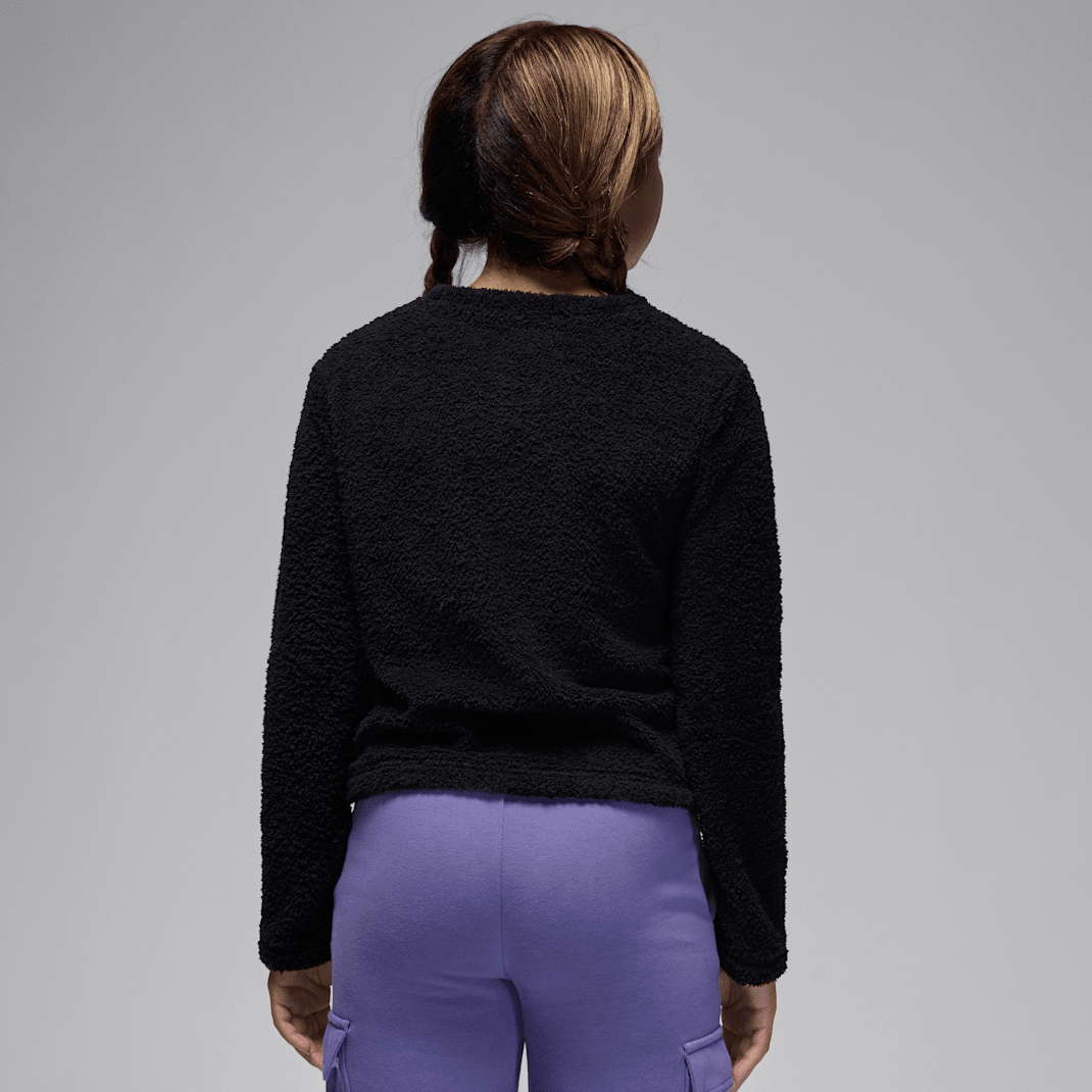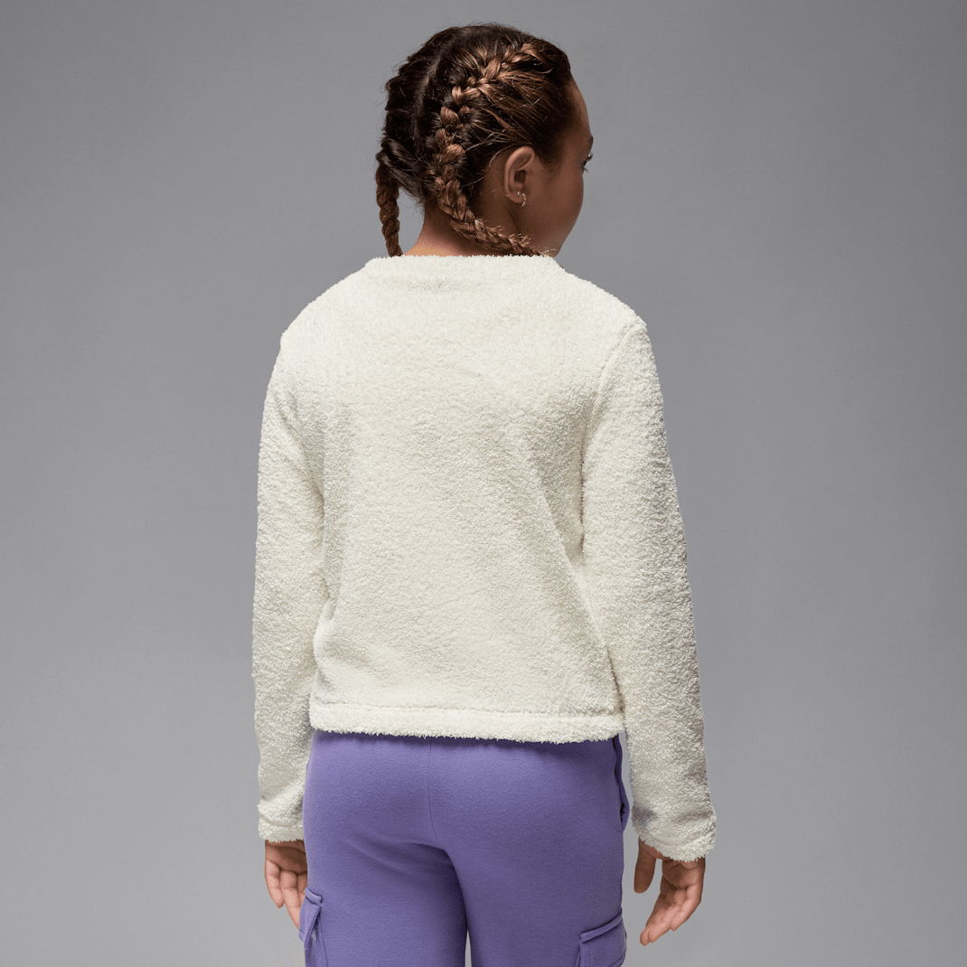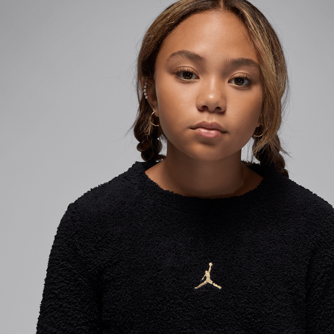Featuring metallic Jumpman logo embroidery, get cozy in this crew top, made of supersoft bouclé fleece fabric in a cropped silhouette with dropped shoulders that relax the fit.
