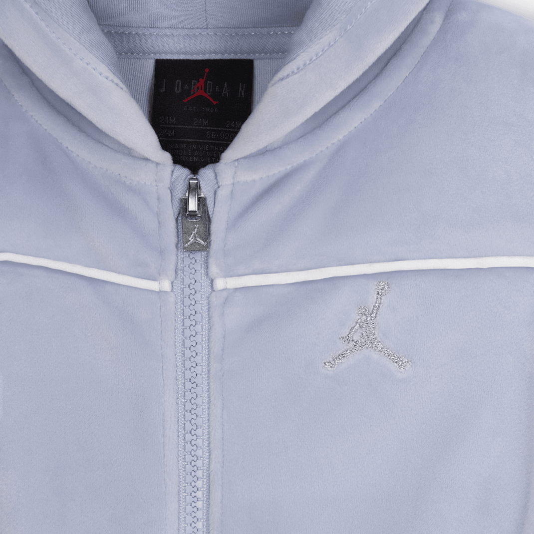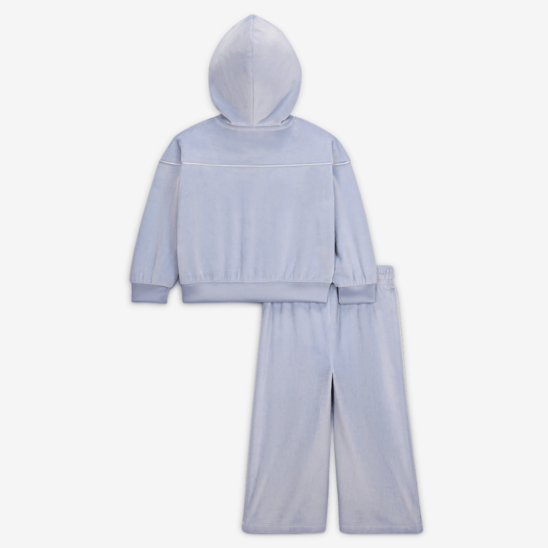 Featuring design inspired by the classic tracksuit, this two-piece set is made of velour fabric that feels soft and cozy, and will complement your little one’s Jordans. The hoodie has dropped shoulders that relax the fit, modern dolman sleeves, and a full-zip closure that makes layering over a tank or tee easy. The matching pants have a stretchy waistband for a comfy fit, and wide legs that allow for lots of movement and play.
