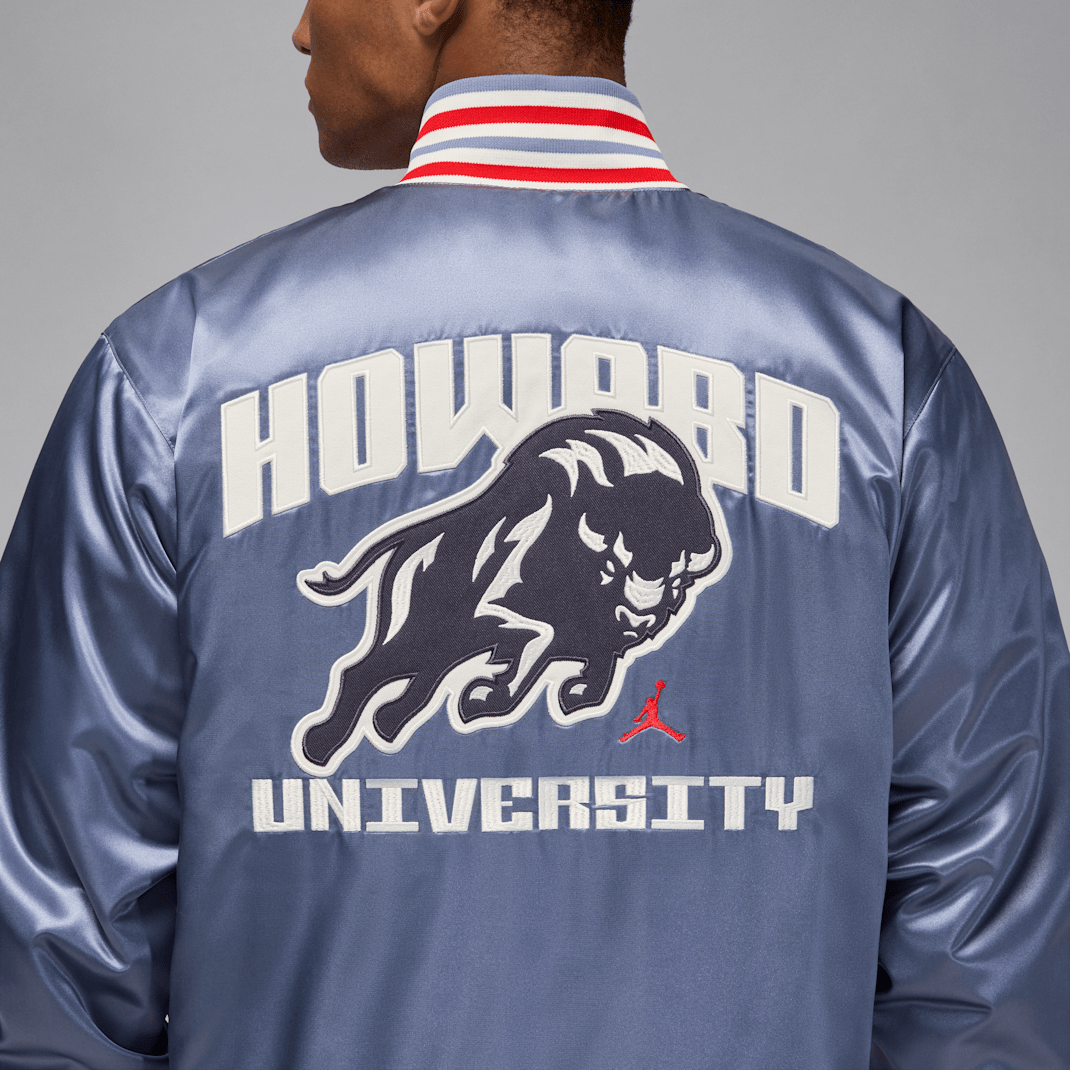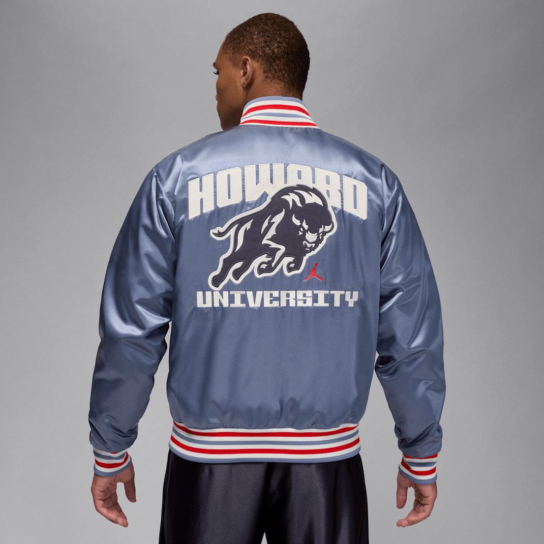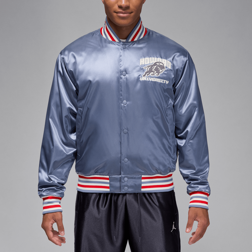 Bison pride runs deep. Show yours off loud and proud in this HU varsity jacket. With a shiny satin shell and smooth nylon lining, this roomy layer channels an iconic collegiate silhouette with embroidered details and ribbed finishes.