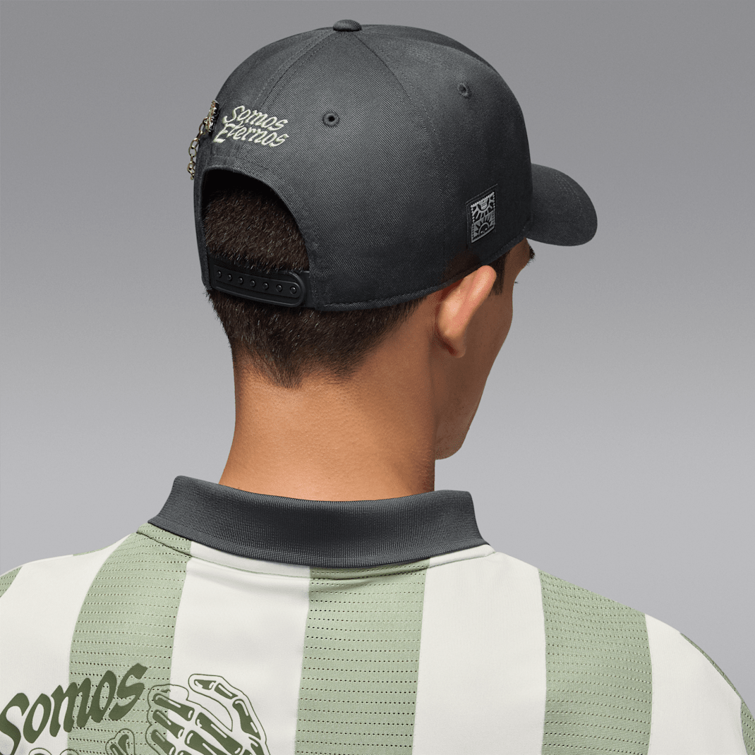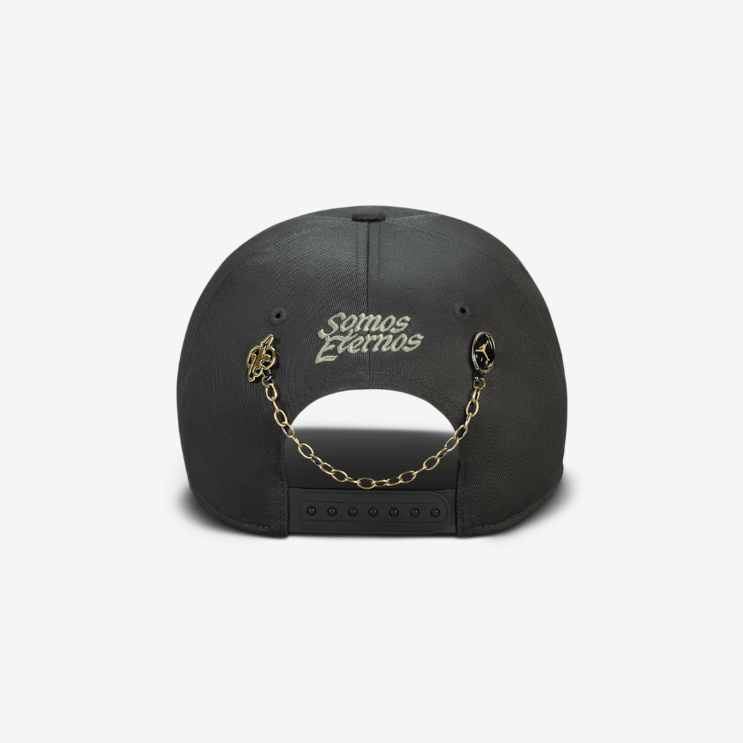 Part of the “Somos Eternos” collection, this hat celebrates Día de Muertos with a design that blends heritage and style. The embroidered patch and gold chain with charms add a unique detail that honor memory and legacy.
