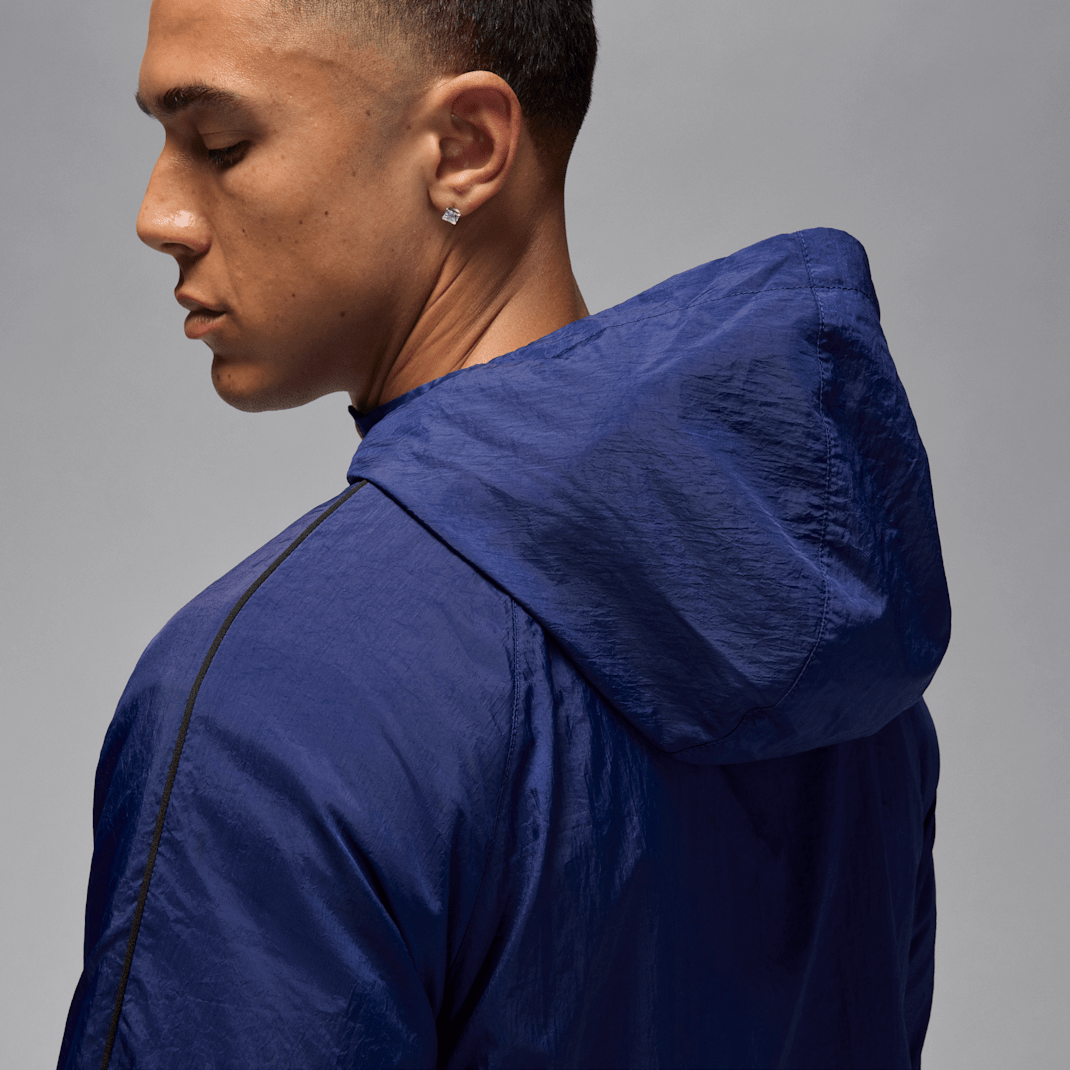Lightweight, crinkled nylon gives this hooded jacket a classic tracksuit look, with subtle piping that nods toward early Jordan Brand looks. We lined the inside with mesh to keep it comfortable and breathable.
