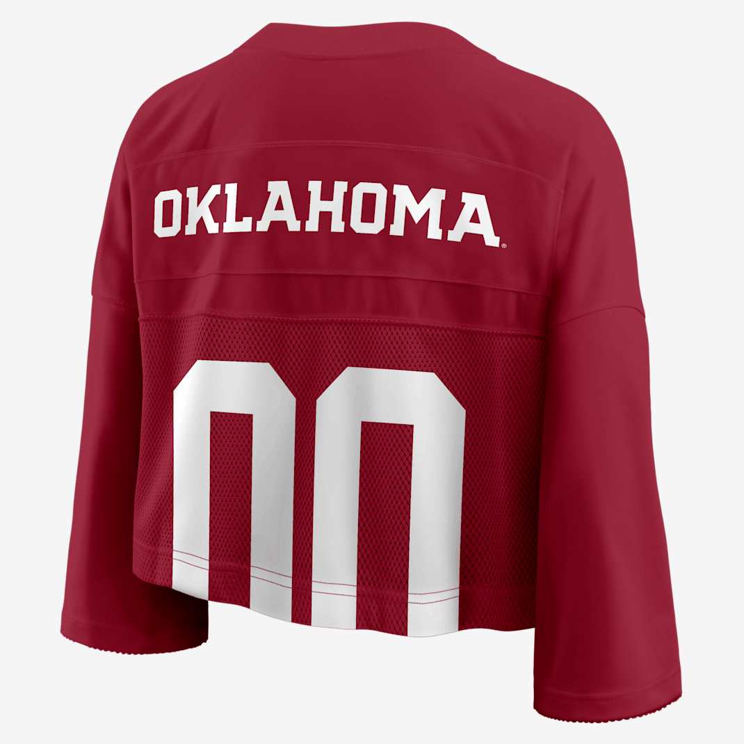 The Oklahoma Jersey Top provides a trendy show of support with a cropped design and bold team graphics. Its polyester fabric is enhanced with sweat-wicking technology to help deliver added comfort.