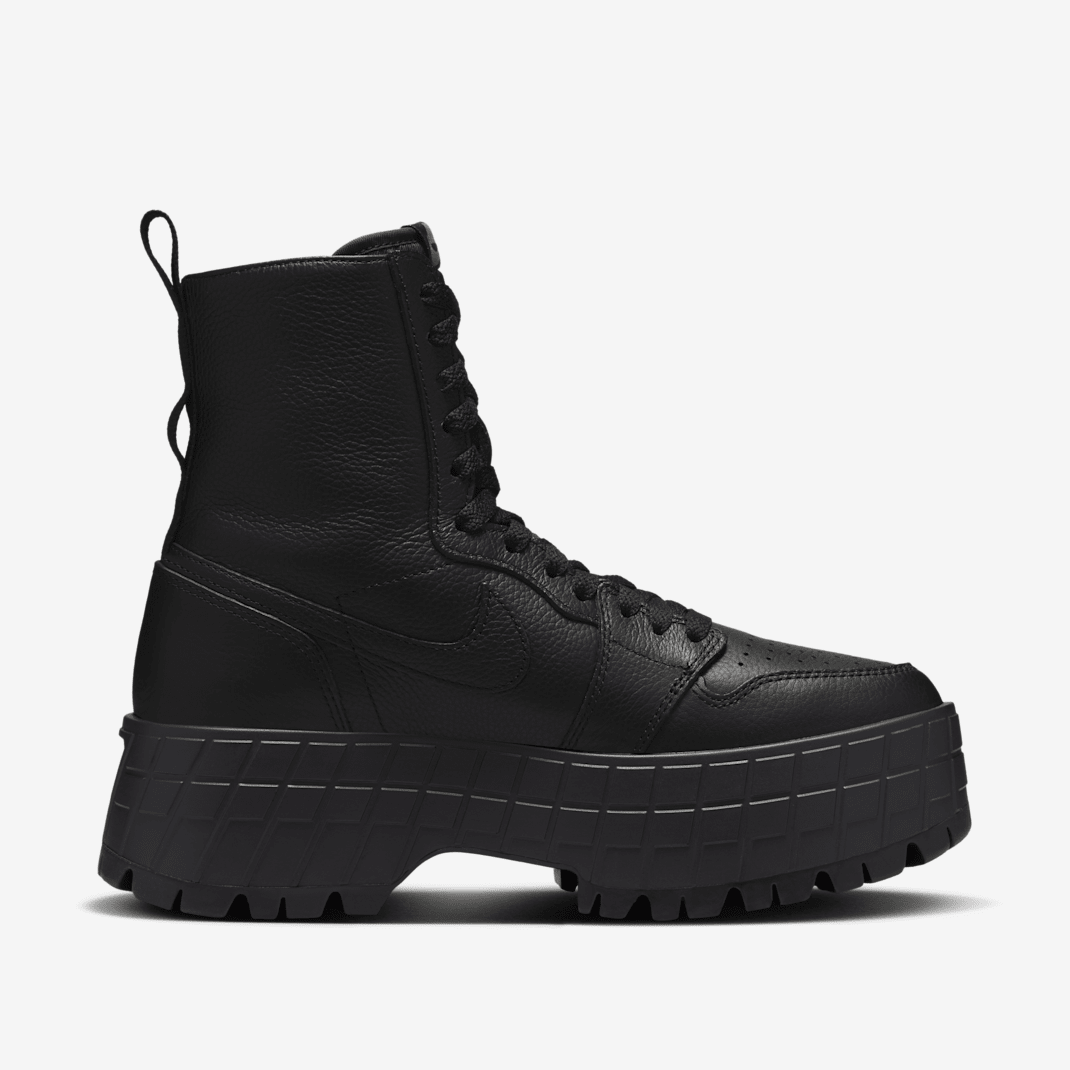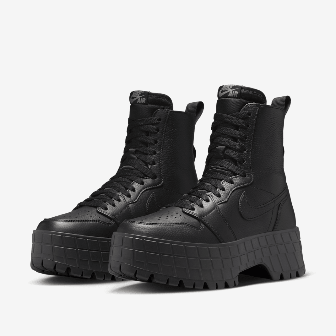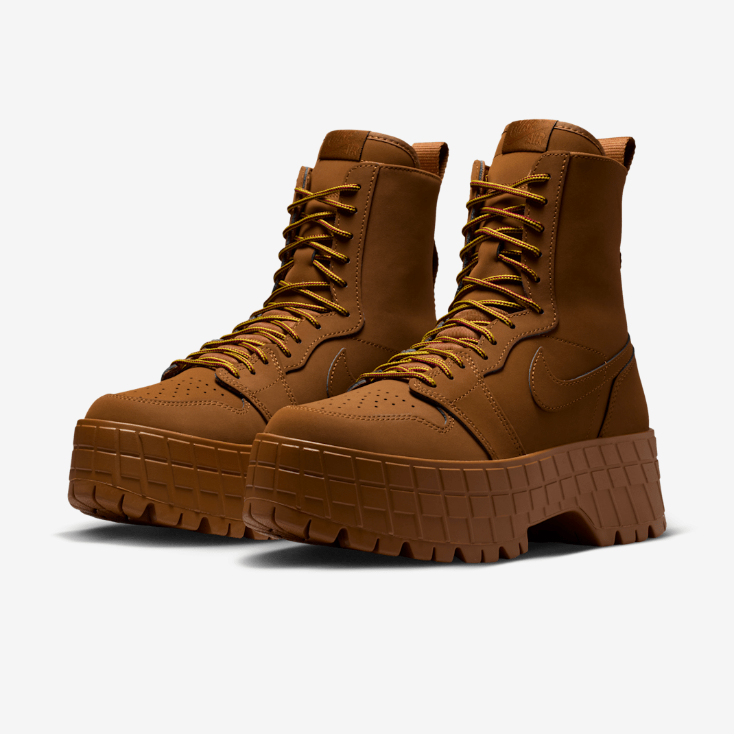(Flight) suited and booted. This bold, rugged sneaker boot is key for your rotation. Luxe leather combines with a chunky platform sole to pump up your personal style. Exaggerated outsole lugs and Nike Air cushioning support your steps. And don’t sleep on the AJ1 DNA: a diamond inset on the heel displays Jumpman insignia, grounding your look in hoops heritage.