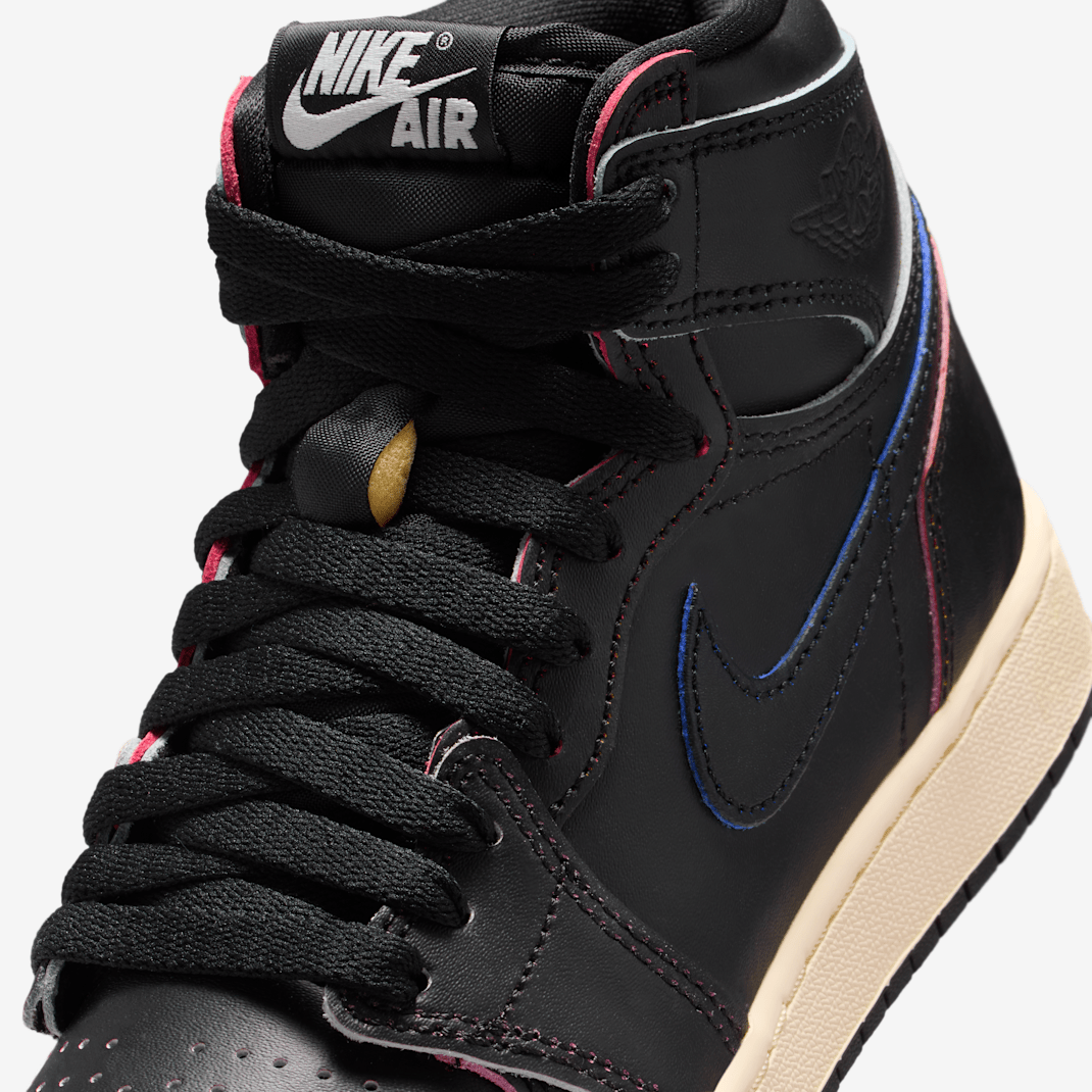Self-expression takes courage. With authenticity comes vulnerability. The iconic AJ1 puts every stitch, every overlay and every detail on full display??it always has. But this deceptively understated design keeps the inner vibrance and energy cloaked behind a smooth, wear-away black leather upper. And when the timing is right, color-soaked panels shine through to reveal its charged and colorful disposition.