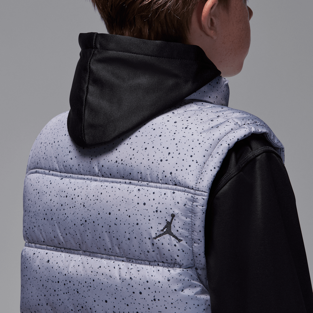 This jacket has the look of a vest layered over a hoodie. The vest is made of woven poly ripstop fabric and filled with soft faux down for a cozy feel. It has a full-zip closure and pockets at the sides to stash small items or help keep your hands toasty and the water resistant finish helps you stay dry in light rains. The hood and sleeves are made of soft poly fleece enhanced with heat-retaining, quick-drying, moisture-wicking Therma-FIT technology to help you stay comfy in cooler weather.