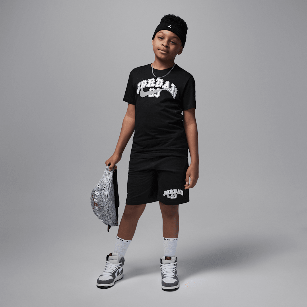 Made of soft cotton/poly French terry fabric, these shorts are a classic warm weather style comfy enough for everyday wear. The stretch waistband has a drawcord for a fit that feels just right, pockets provide spots to stash small items, and the cut is roomy enough to layer the shorts over tights for extra warmth. Pair with the Jordan MVP T-Shirt for a coordinated look that complements your kicks.