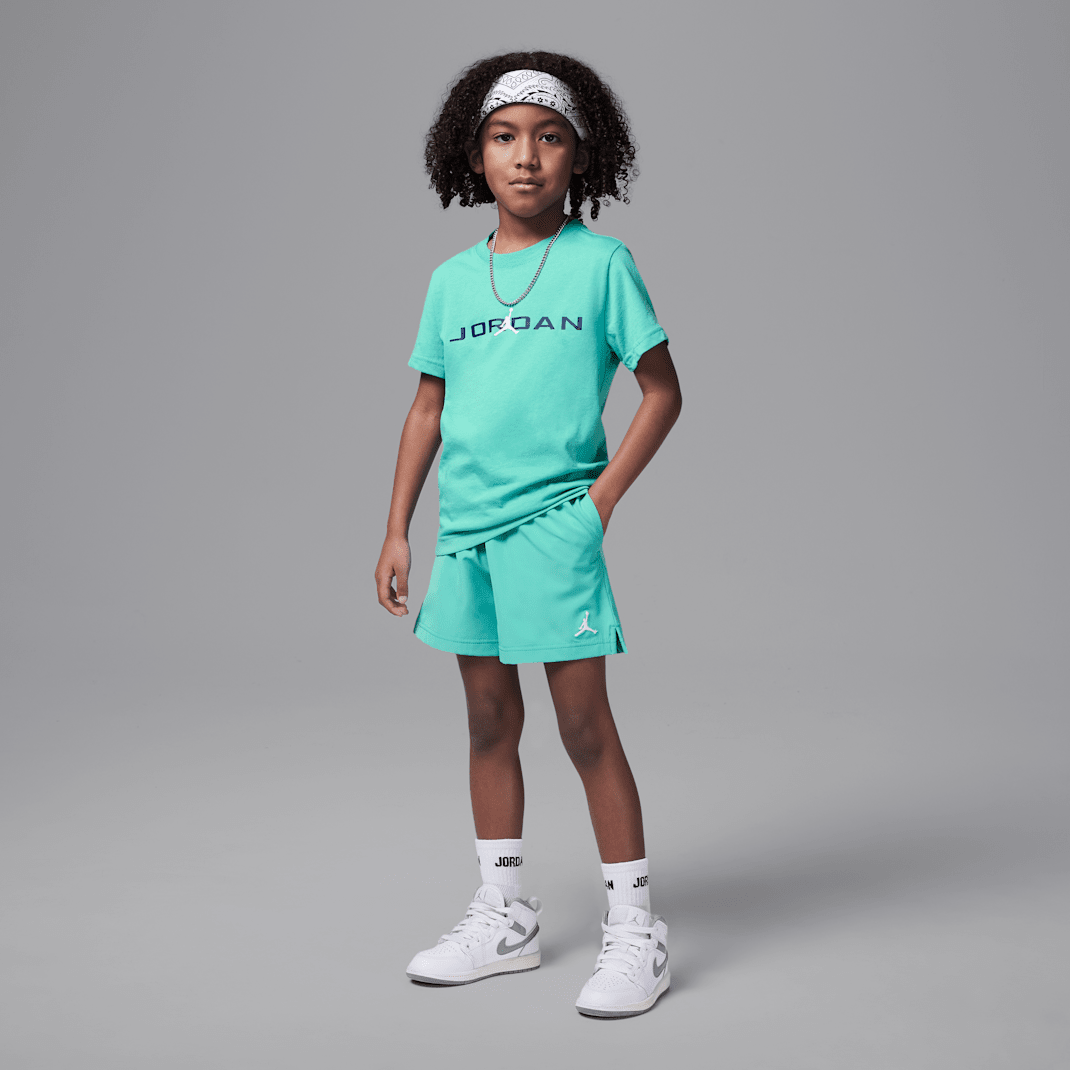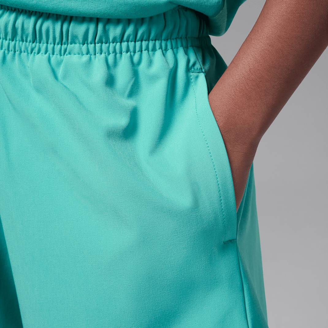 These lightweight “goes-with-anything” shorts are made of woven poly poplin fabric with added stretch for freedom of play. The stretch waistband has a drawcord for a comfy fit perfect for relaxing or getting active, and pockets provide spots to stash small items. Pair with any Jordan top for a coordinated look that complements your little one’s kicks.