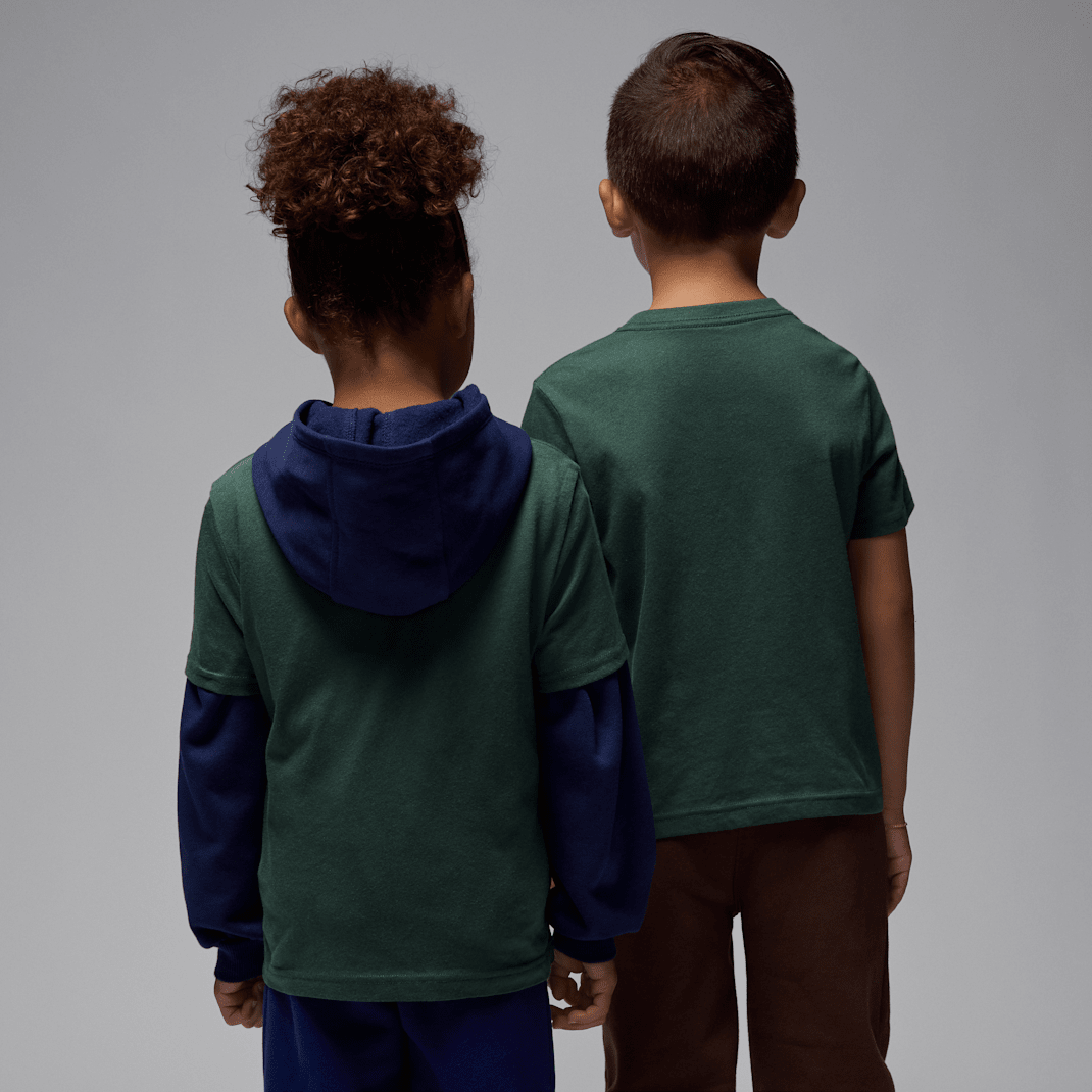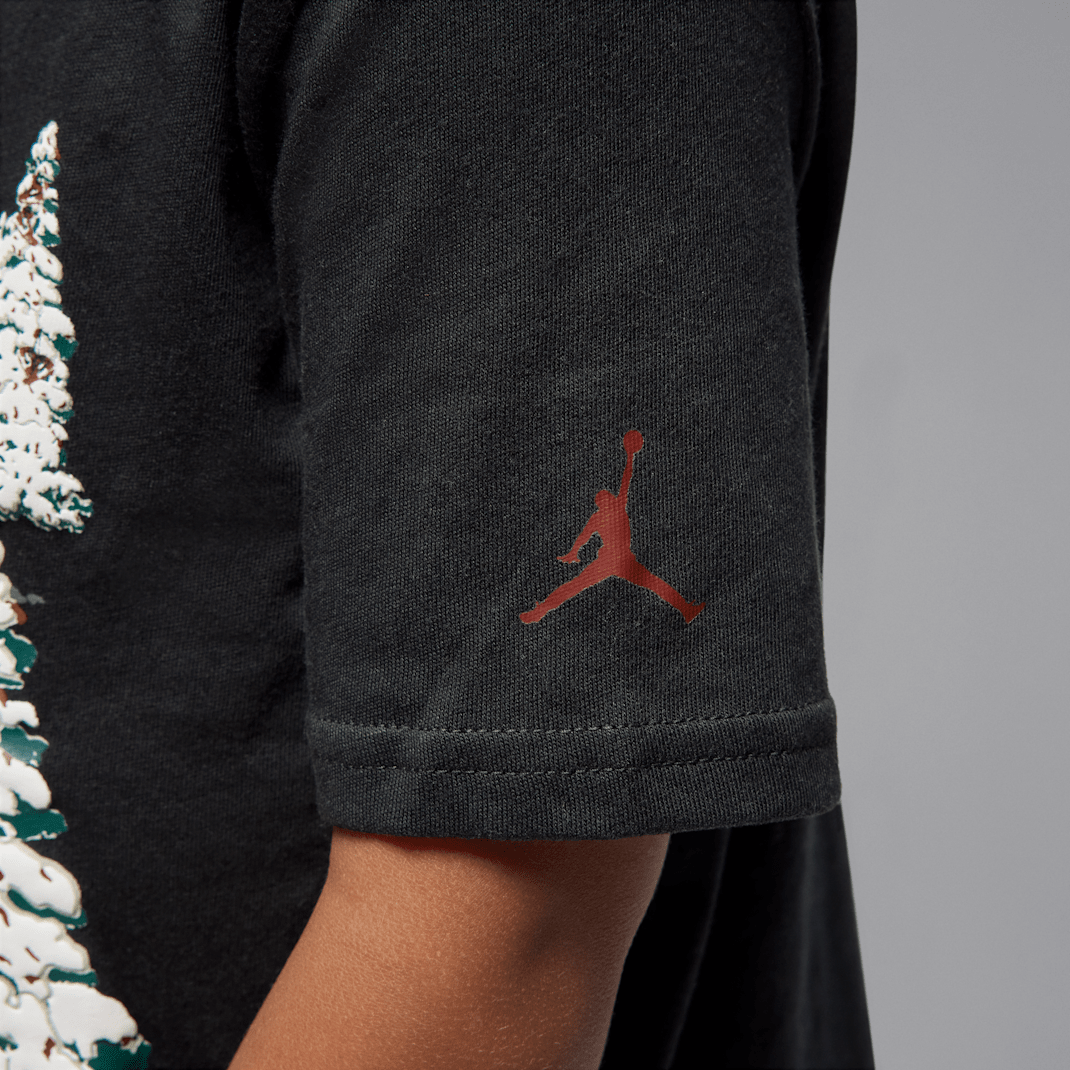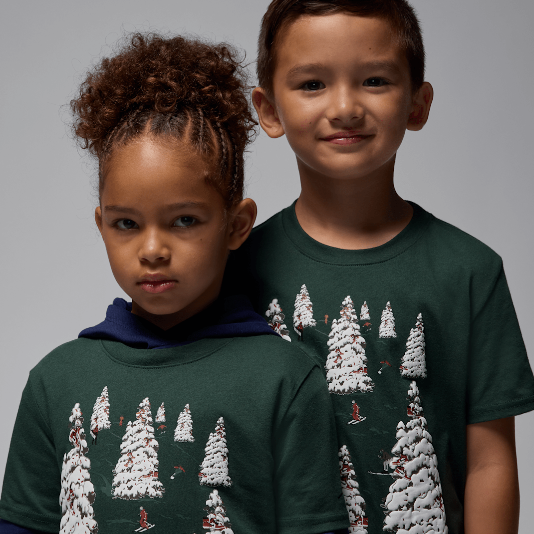 Featuring a festive winter scene, this tee is hoop style for the holidays and beyond made of jersey knit fabric in a short-sleeve silhouette with dropped shoulders that relax the fit. Style with a pair of Jordan joggers for a cozy, coordinated look that will complement your kiddo’s kicks.