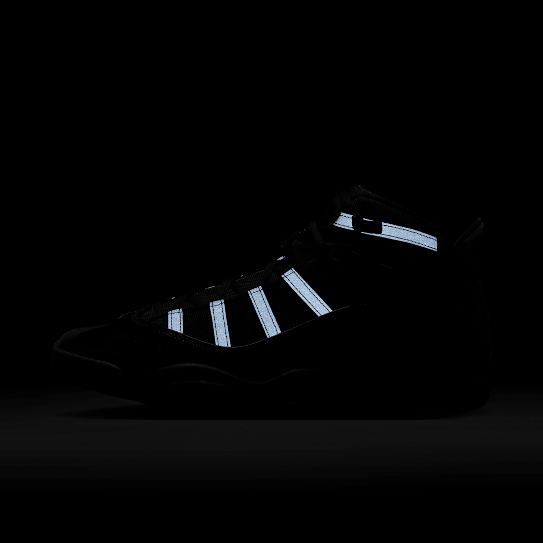 Pay homage to MJ’s career in the Jordan 6 Rings. The design pulls in elements from a range of iconic AJs, like the patent leather mudguard from the AJ11 and the outsole and midsole sculpting of the AJ13.