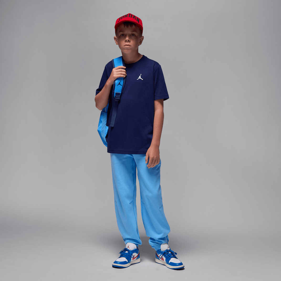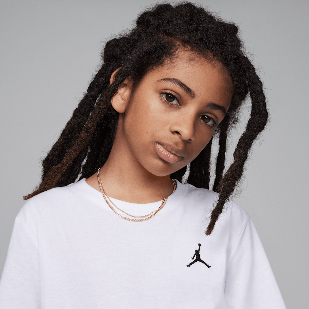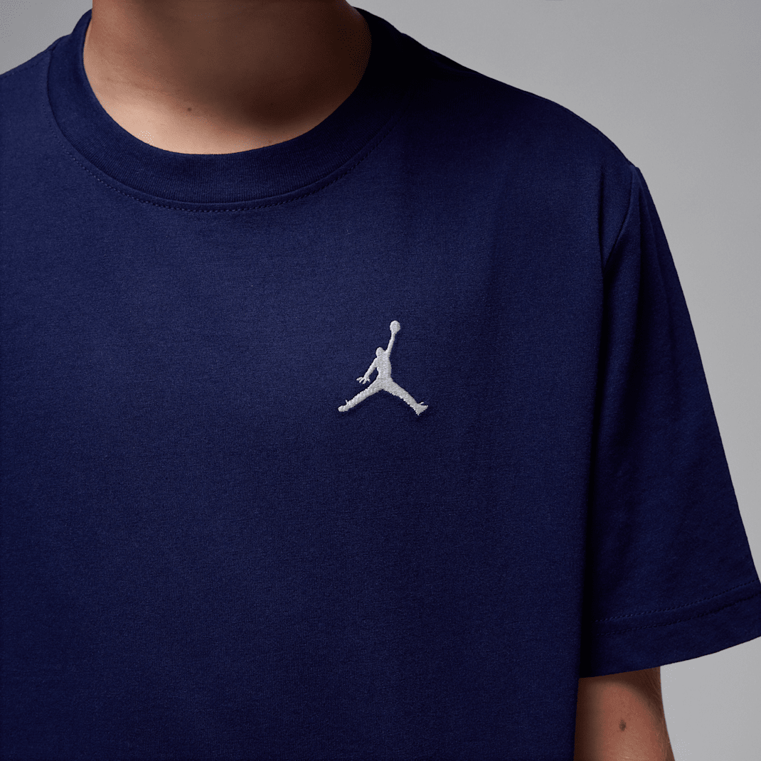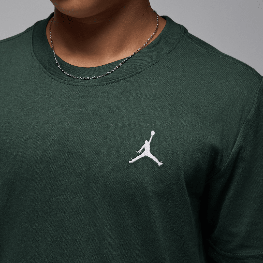Featuring a small embroidered Jumpman logo, this is the classic “goes-with-anything” tee. It’s made of soft cotton/poly jersey in a timeless silhouette with a tagless crewneck for comfy wear.