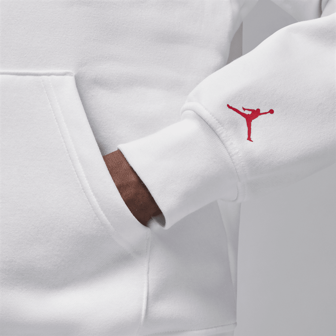 Rep the ’90s energy of the AJ8 in this classic hoodie. Its midweight brushed fleece feels extra soft on the inside and smooth on the outside, helping you stay cozy while keeping its structured shape.