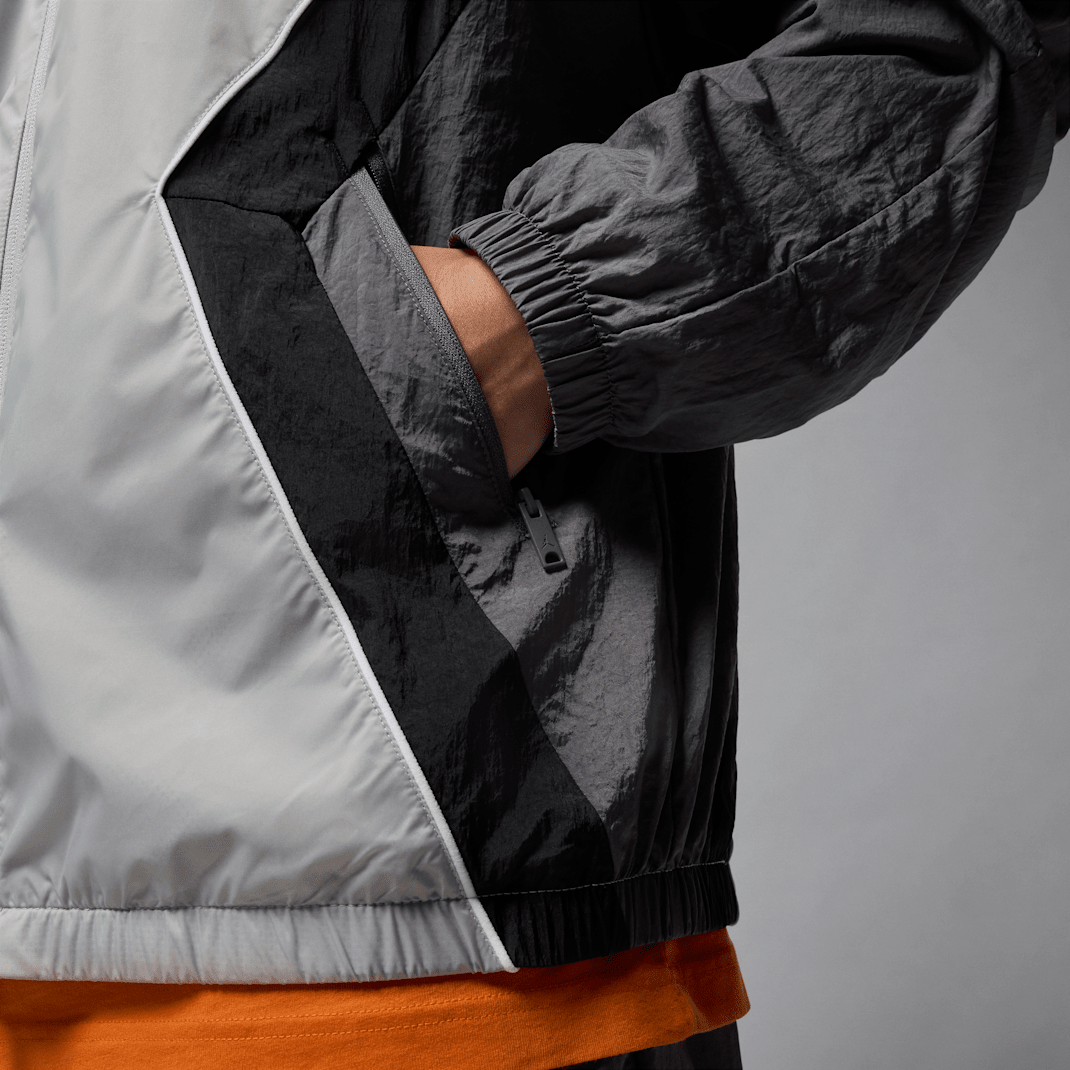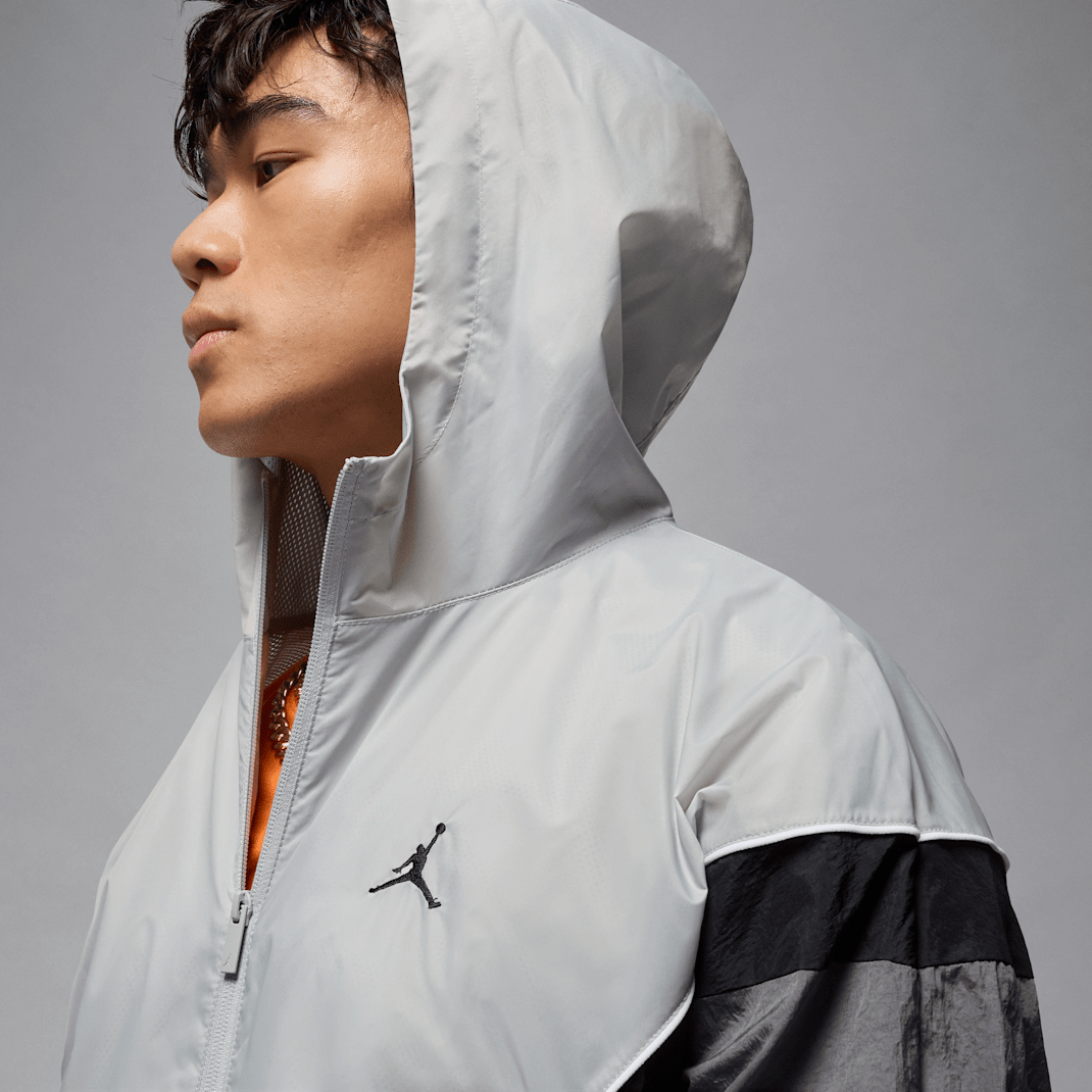 Lightweight and slick, the Draft Jacket is Jordan’s take on the windbreaker. Smooth, water-repellent nylon fabric and an airy mesh lining help keep you dry and comfortable. Piping details add heritage style inspired by MJ’s early warm-up looks.