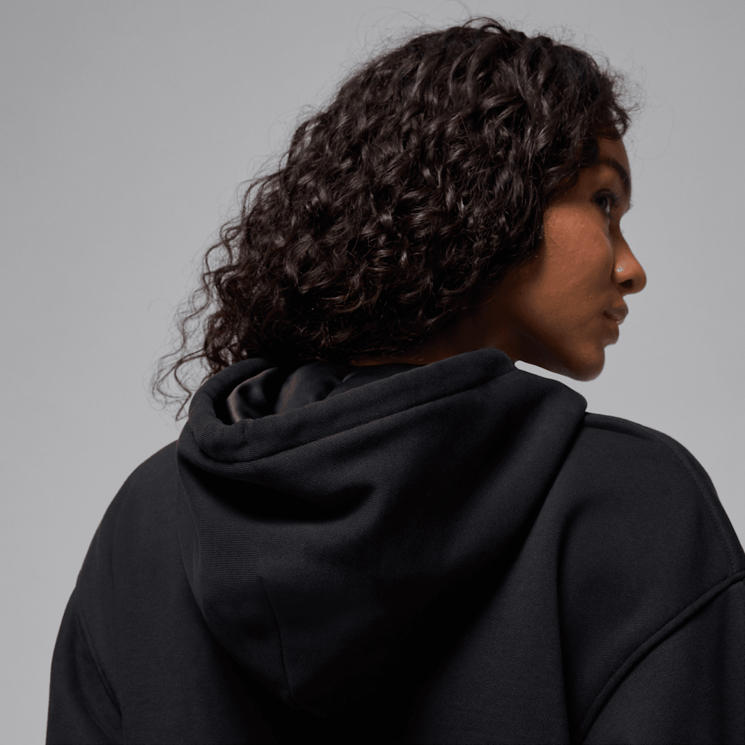 With heavyweight French terry fabric and a cropped silhouette, this roomy hoodie is big on comfort and style. A smooth satin lining in the hood helps keep your hair on point.