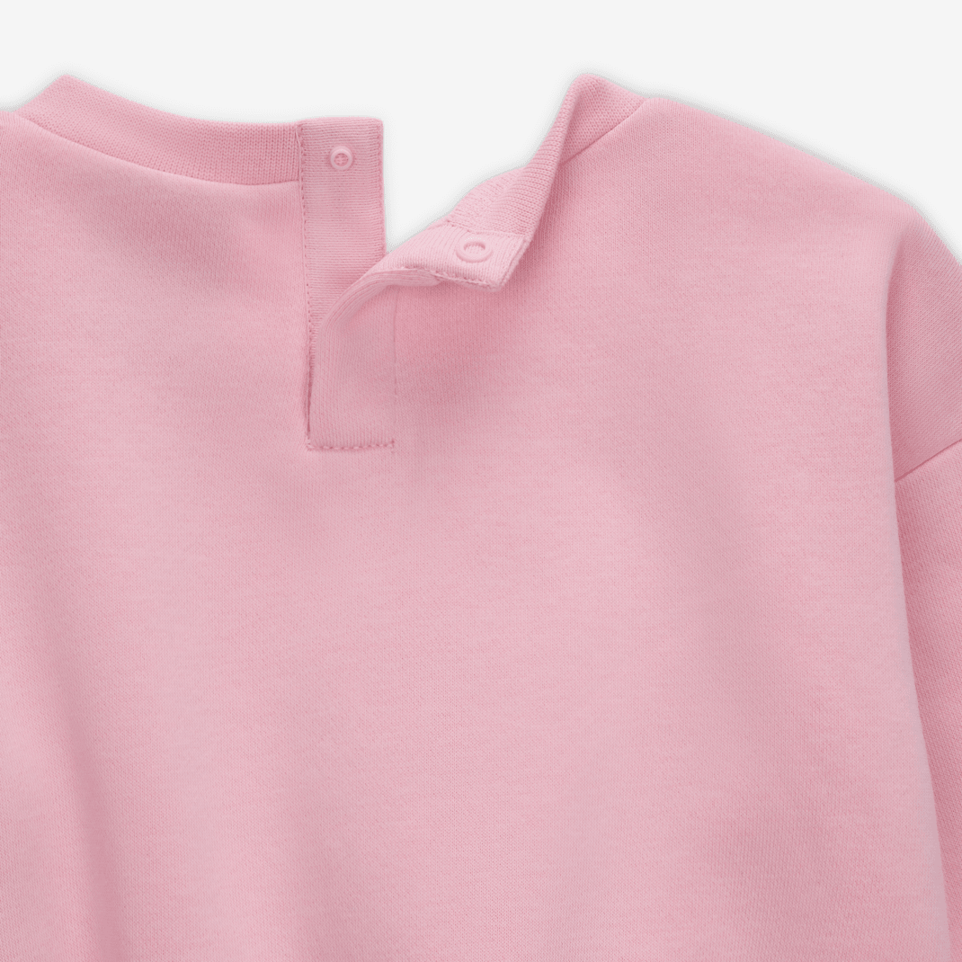 Dress smaller ballers-to-be in this two-piece set, which is made of blended cotton fleece that feels smooth on the outside and soft on the inside. The crew top has snappy tape closures on the back neckline for easy dressing, dropped shoulders that relax the fit, and an elasticized bubble hem. The matching pants have a stretchy waistband for a comfy fit and tapered legs for a cozy, secure feel that spotlights your child’s Jordans.