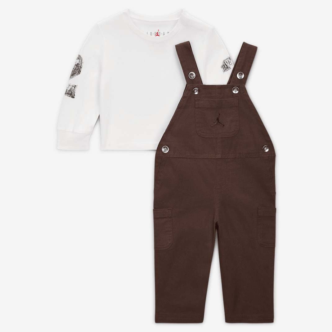 Overalls and a tee – a timeless, easy, outfit no matter a person’s age, and this two-piece set is Jordan’s take on the classic style. The tee is a long-sleeve silhouette with snappy tape closures on the shoulder for easy dressing. The cotton overalls have added stretch for ease of movement, multiple pockets for your kiddo to stash small items, and adjustable straps for a comfy fit.