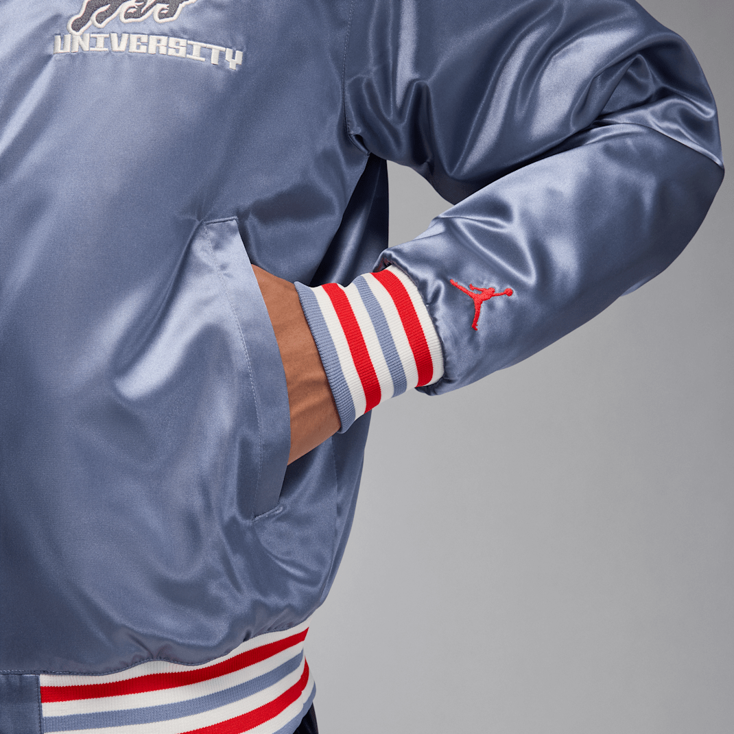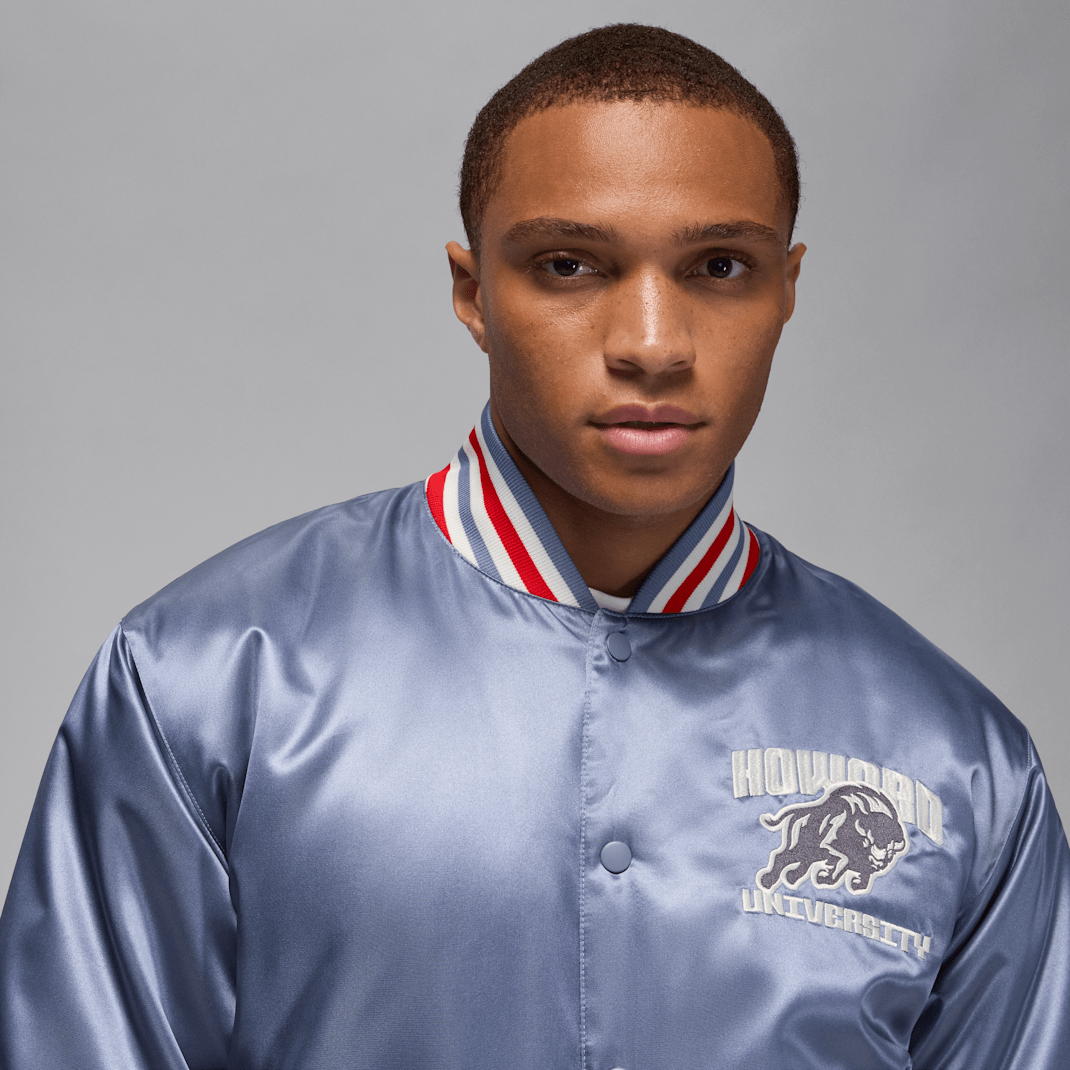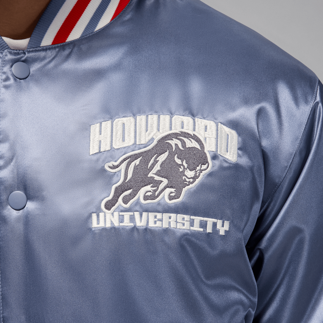 Bison pride runs deep. Show yours off loud and proud in this HU varsity jacket. With a shiny satin shell and smooth nylon lining, this roomy layer channels an iconic collegiate silhouette with embroidered details and ribbed finishes.