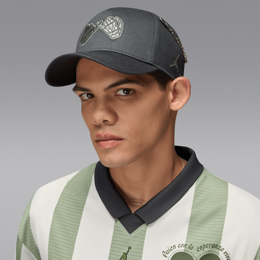 Part of the “Somos Eternos” collection, this hat celebrates Día de Muertos with a design that blends heritage and style. The embroidered patch and gold chain with charms add a unique detail that honor memory and legacy.